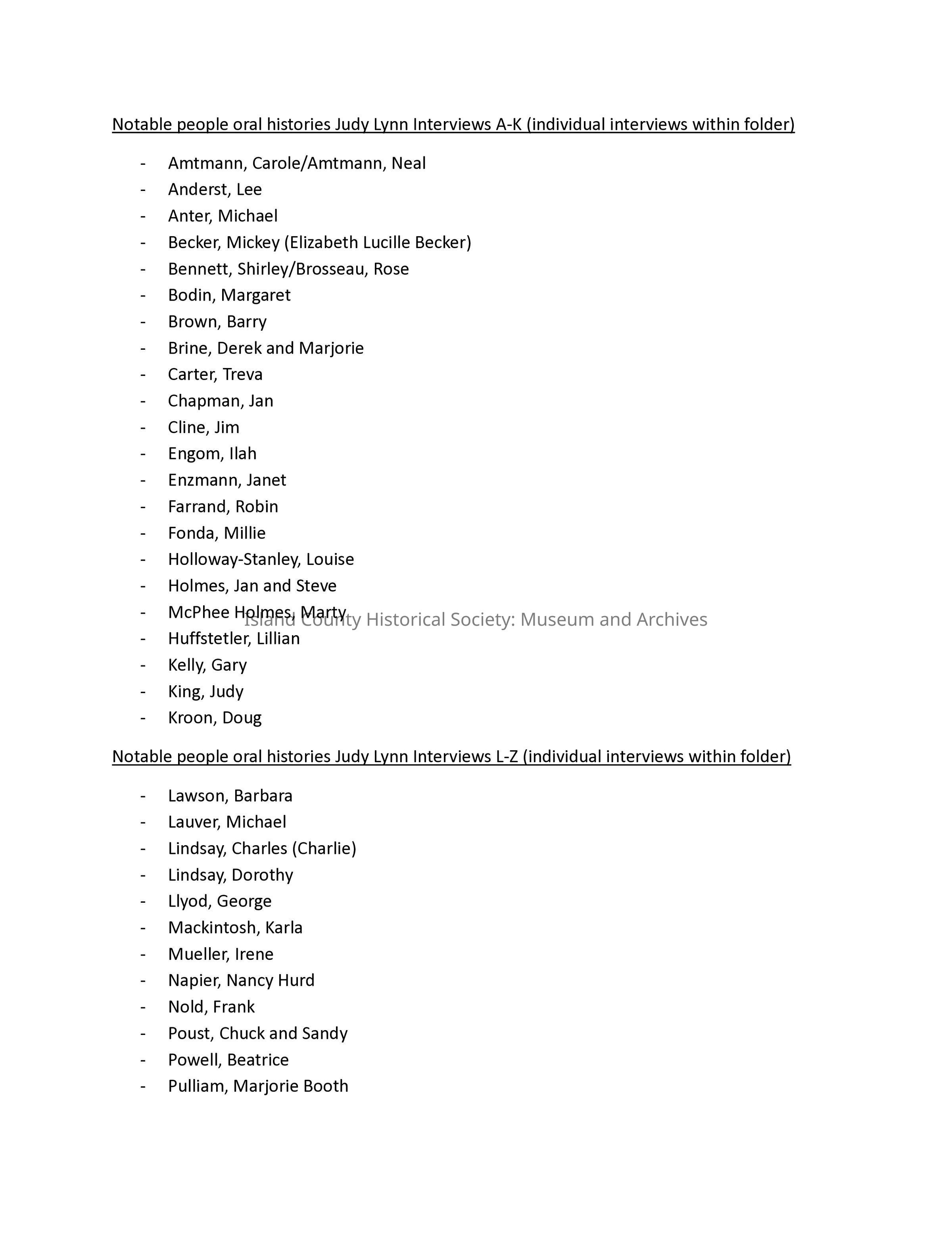An index of the Oral Histories available in the ICHS Archives; please click on the image to get a full list of names.