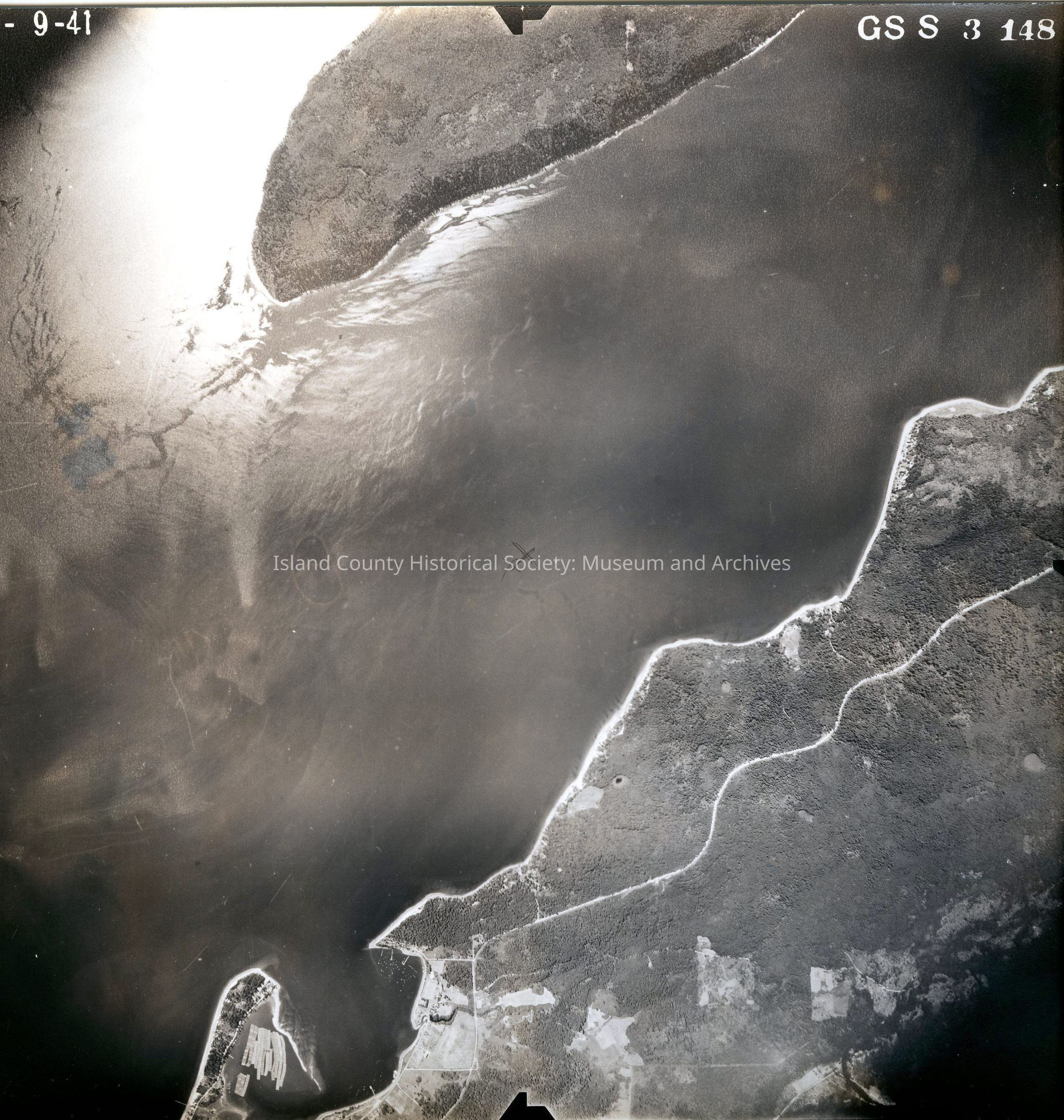 Donated by Island Conservation District 7-9-41 GS S 3 148 Image has logs in a bay and a large pass, or strait of water. Back reads "'Tulalip:Bottom:Middle Camano Island: Top Middle"' See GIS for digital copies.