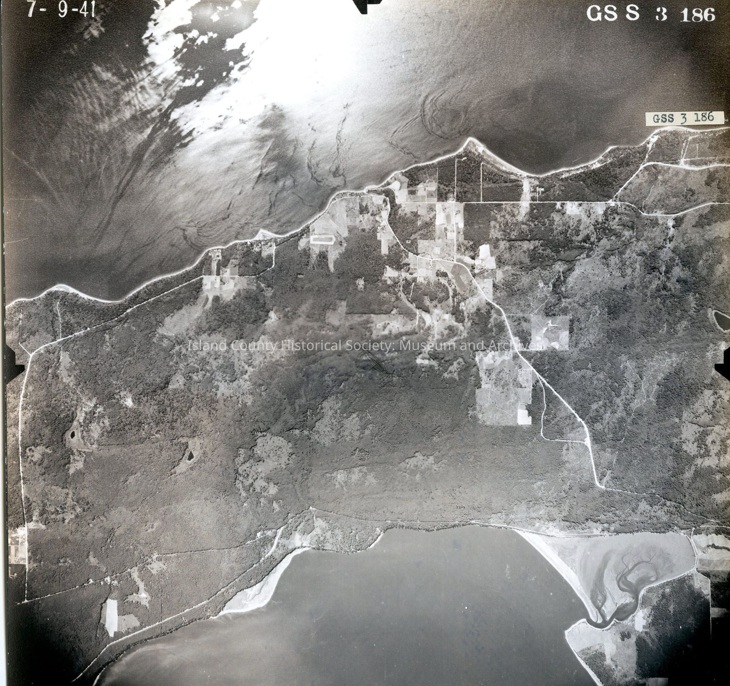 Donated by Island Conservation District 7-9-41 GS S 186 Water to bordering top and bottom of photo. Reads on back "'Camano Island"' See GIS for digital copies.