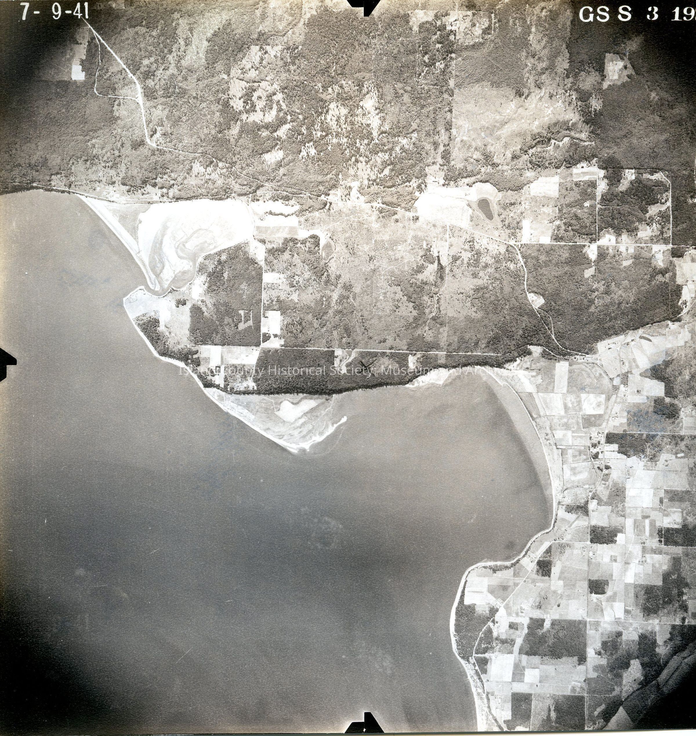 Donated by Island Conservation District 7-9-41 GS S 192 Alot of farmland in lower right corner, big bay in center of picture. Reads '"'Camano Island"' on back. See GIS for digital copies.