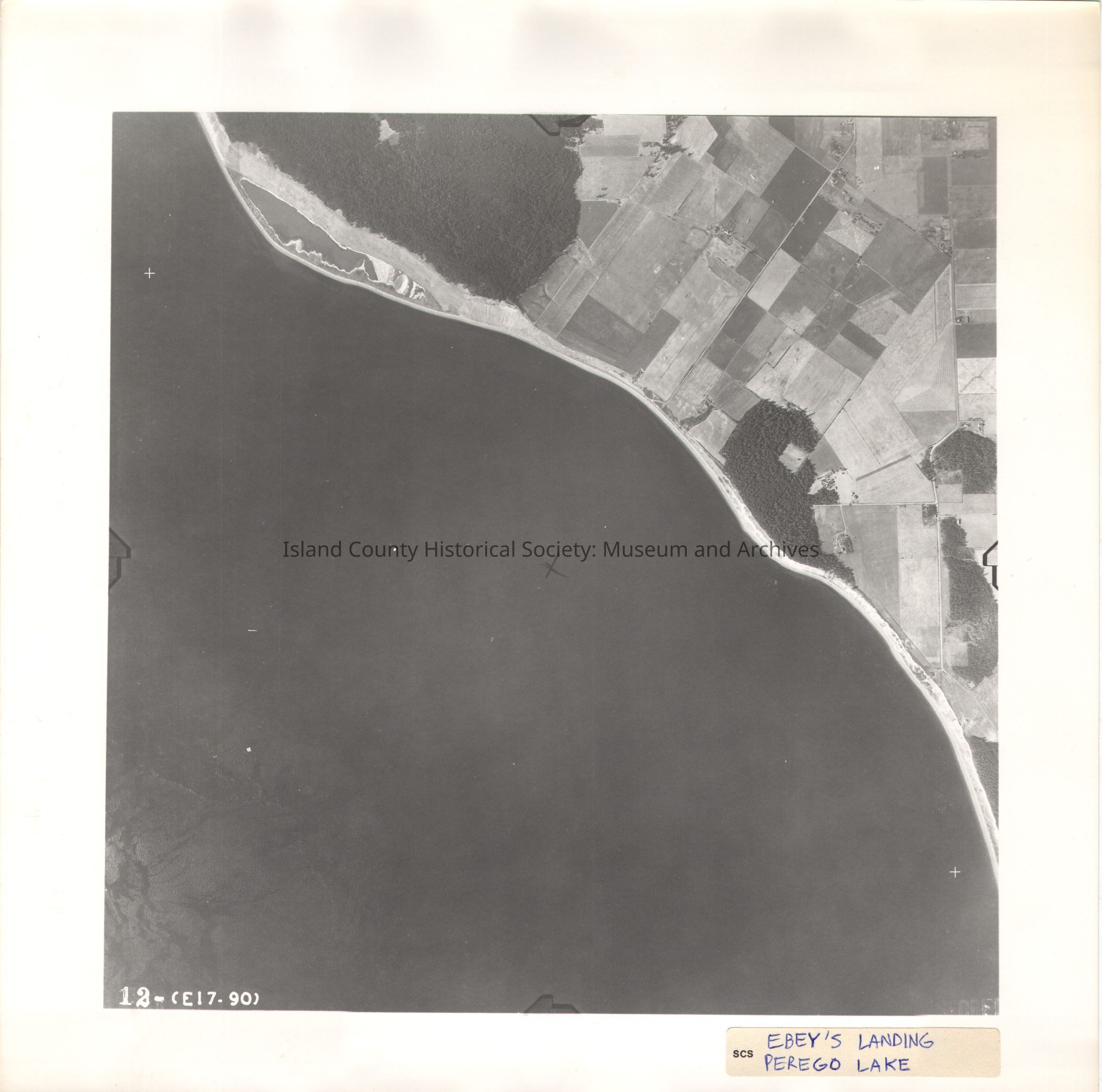 Donated by Island Conservation District 12-(E17-90) Taken on 16 Aug 1942 Picture of Perego Lake and Ebey's Landing. Pencil X in the middle of the image. See GIS for digital copies.
