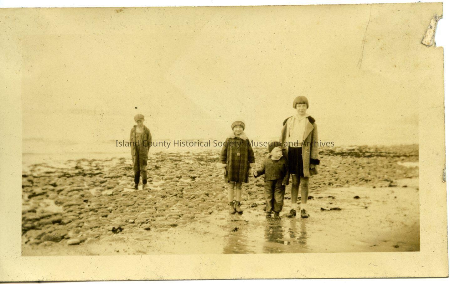 Howard, ?, Eldon, Marjorie Weidenbach at Straits View Farm, West Beach, Whidbey Island