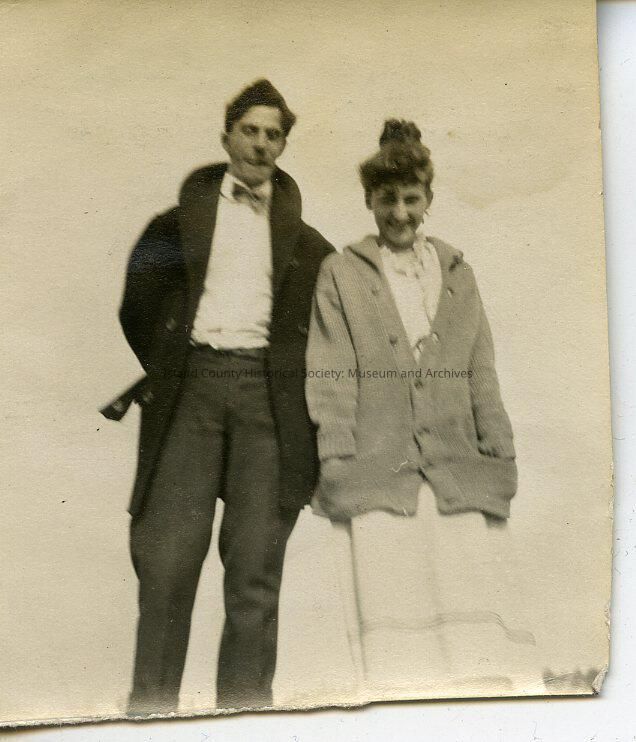 A photo of a man and a woman. Handwritten on the back is "Harold Hill and ?"