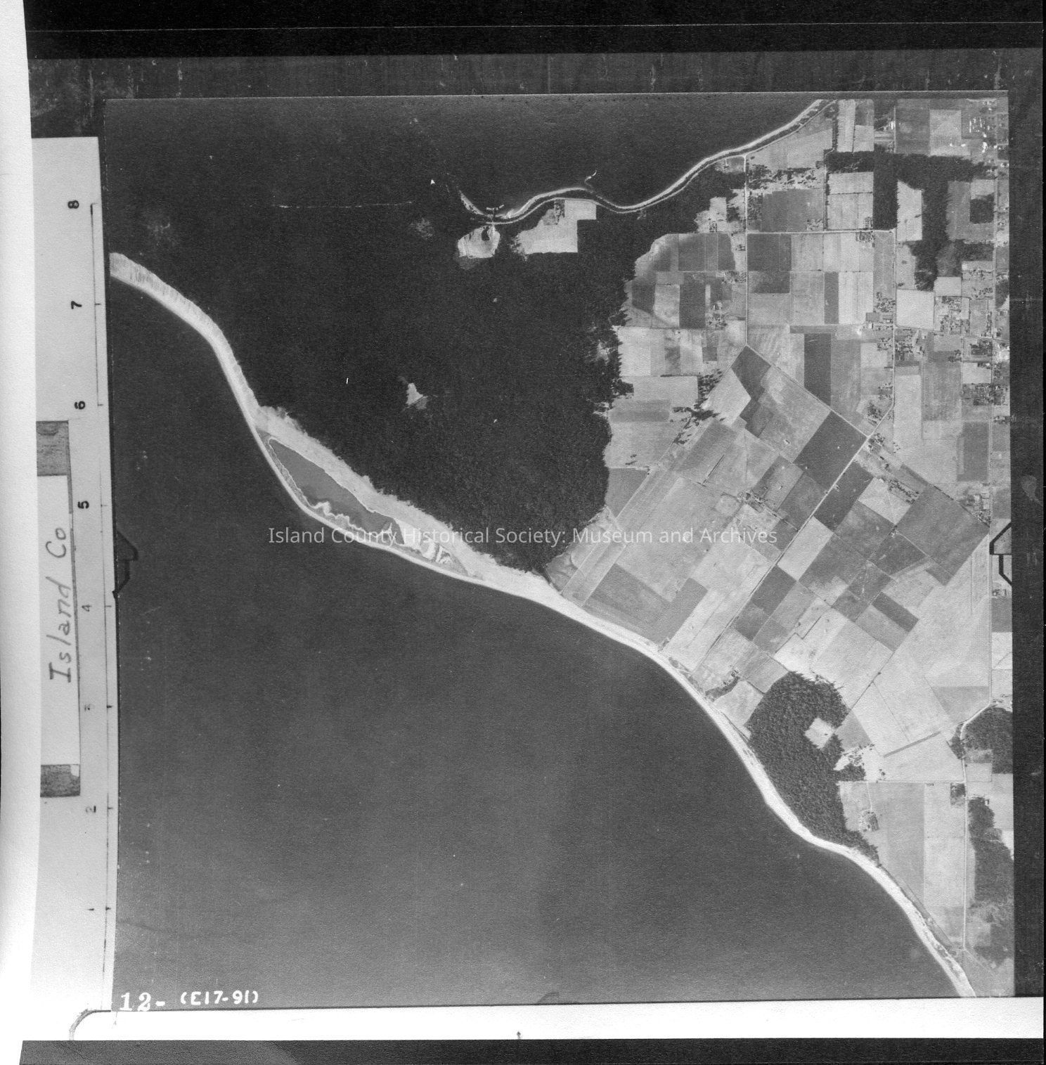 Donated by Island Conservation District Taken on 16 Aug 1942 12-(E17-91) - adjacent to 12-(E17-90) Picture of Perego Lake and Ebey's Landing. Part of Penn Cove. See GIS for digital copies.