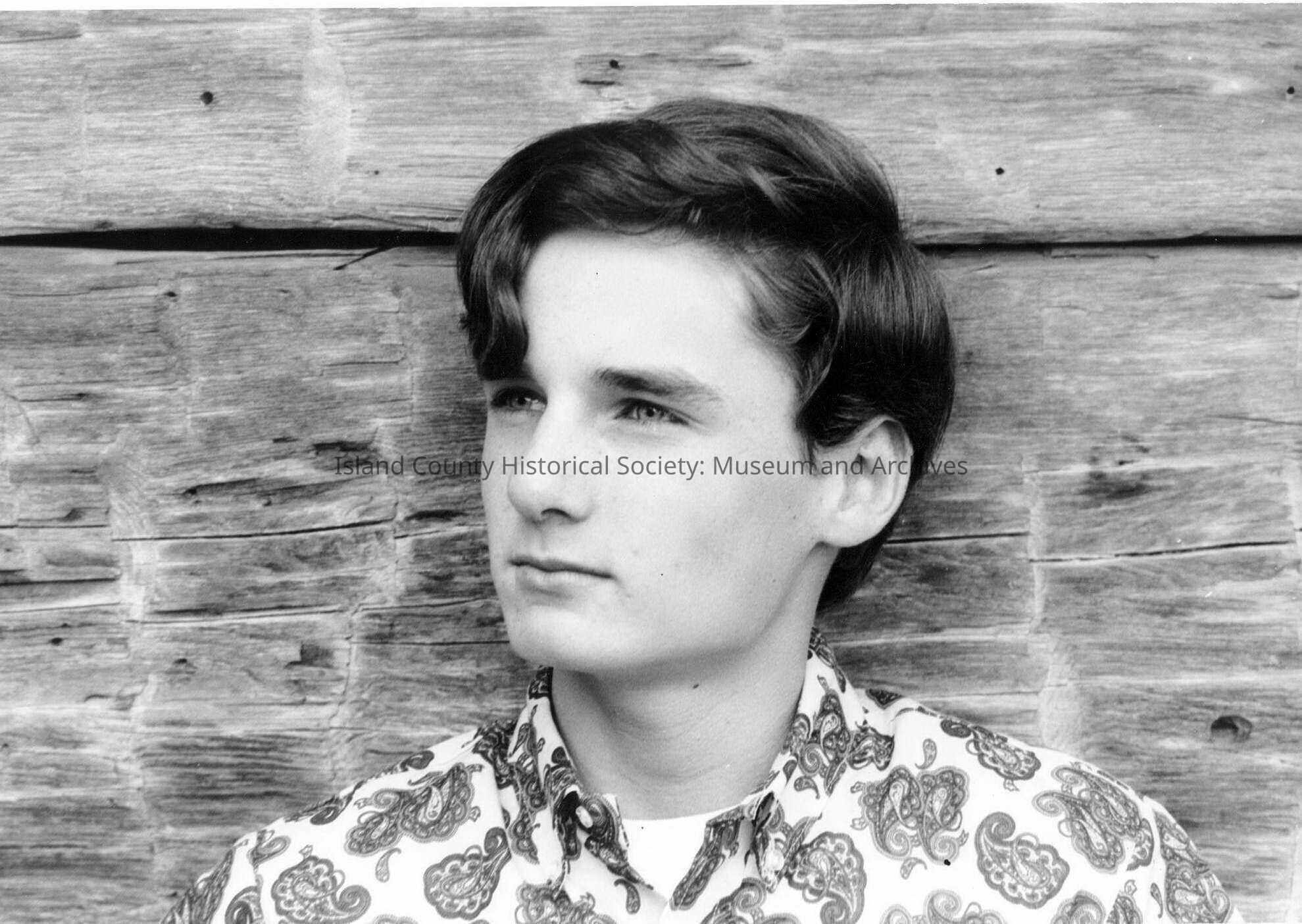 Teenaged boy with a blockhouse in the backgroun.
