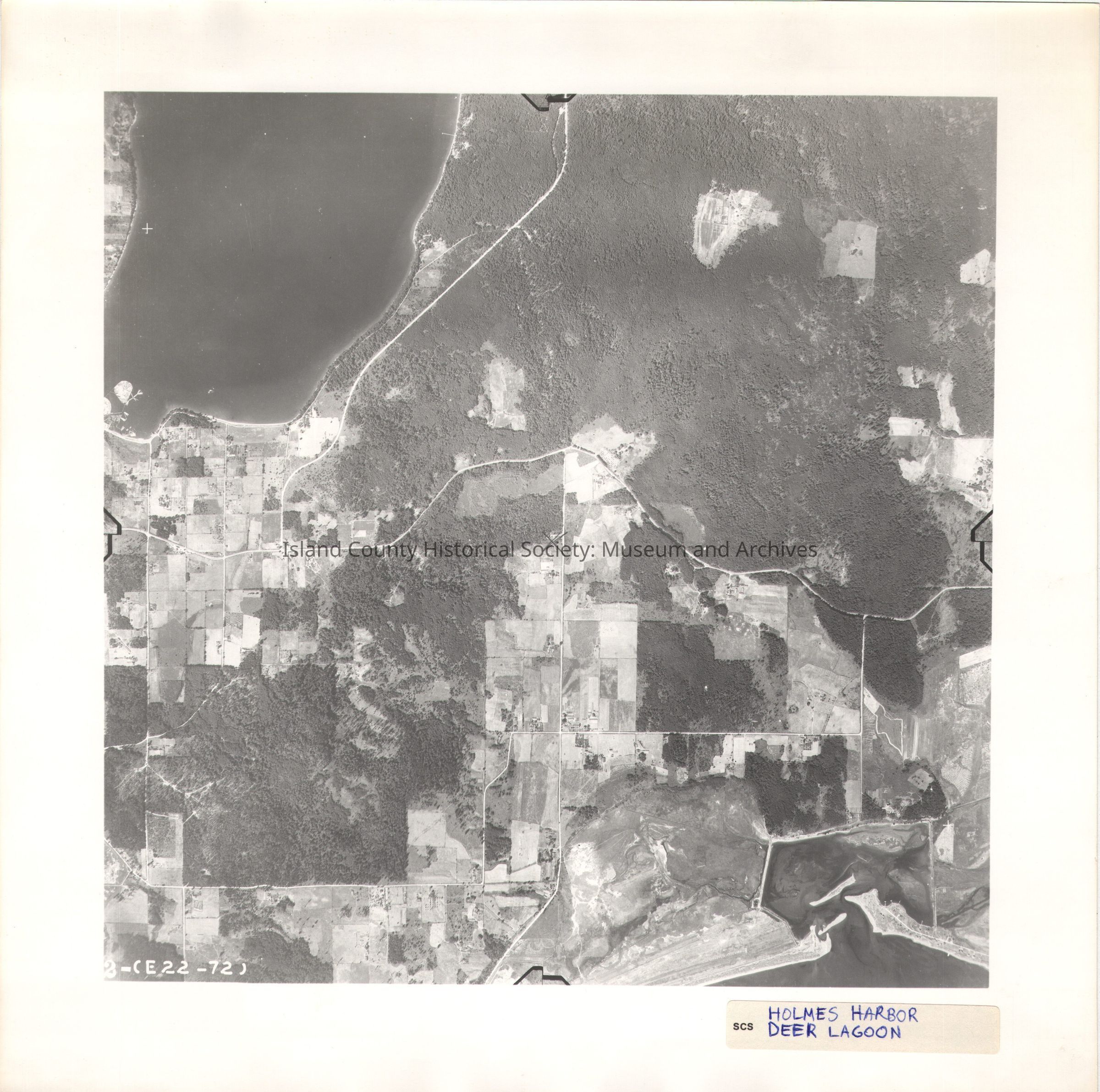 Donated by Island Conservation District 2-(E22-72) Photo taken 8 August 1942. Pencil X in the middle of the image. Holmes Harbor, Freeland. Deer Lagoon See GIS for digital copies.