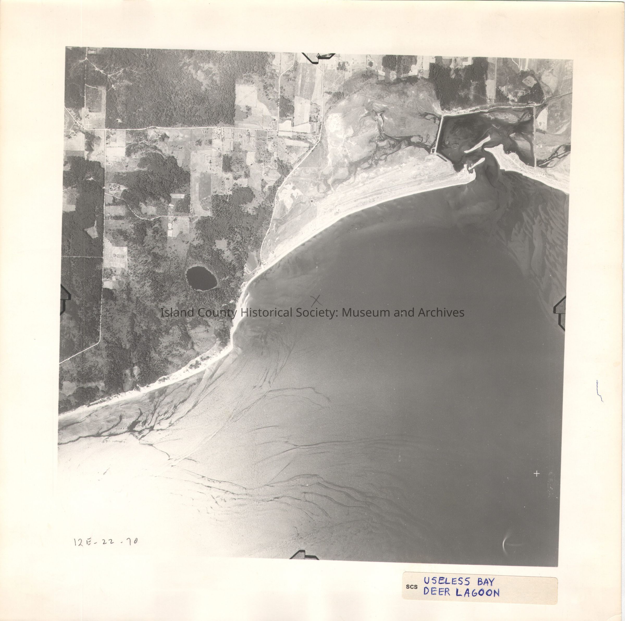 Donated by Island Conservation District 2-(E22-70) Photo taken 8 August 1942. Useless Bay. Deer Lagoon Pencil X in the middle of the image. See GIS for digital copies.