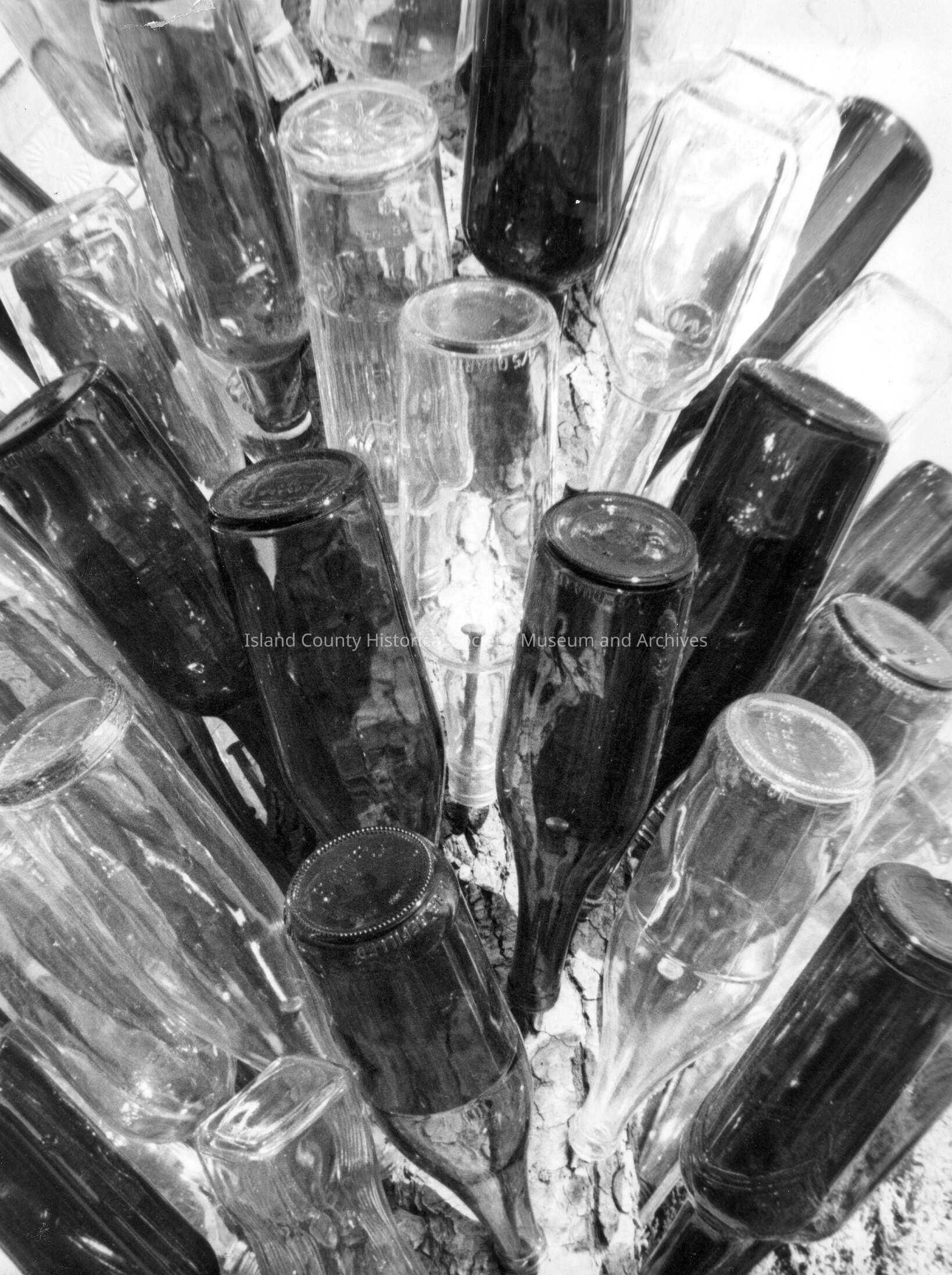 Collection of bottles facing downward.