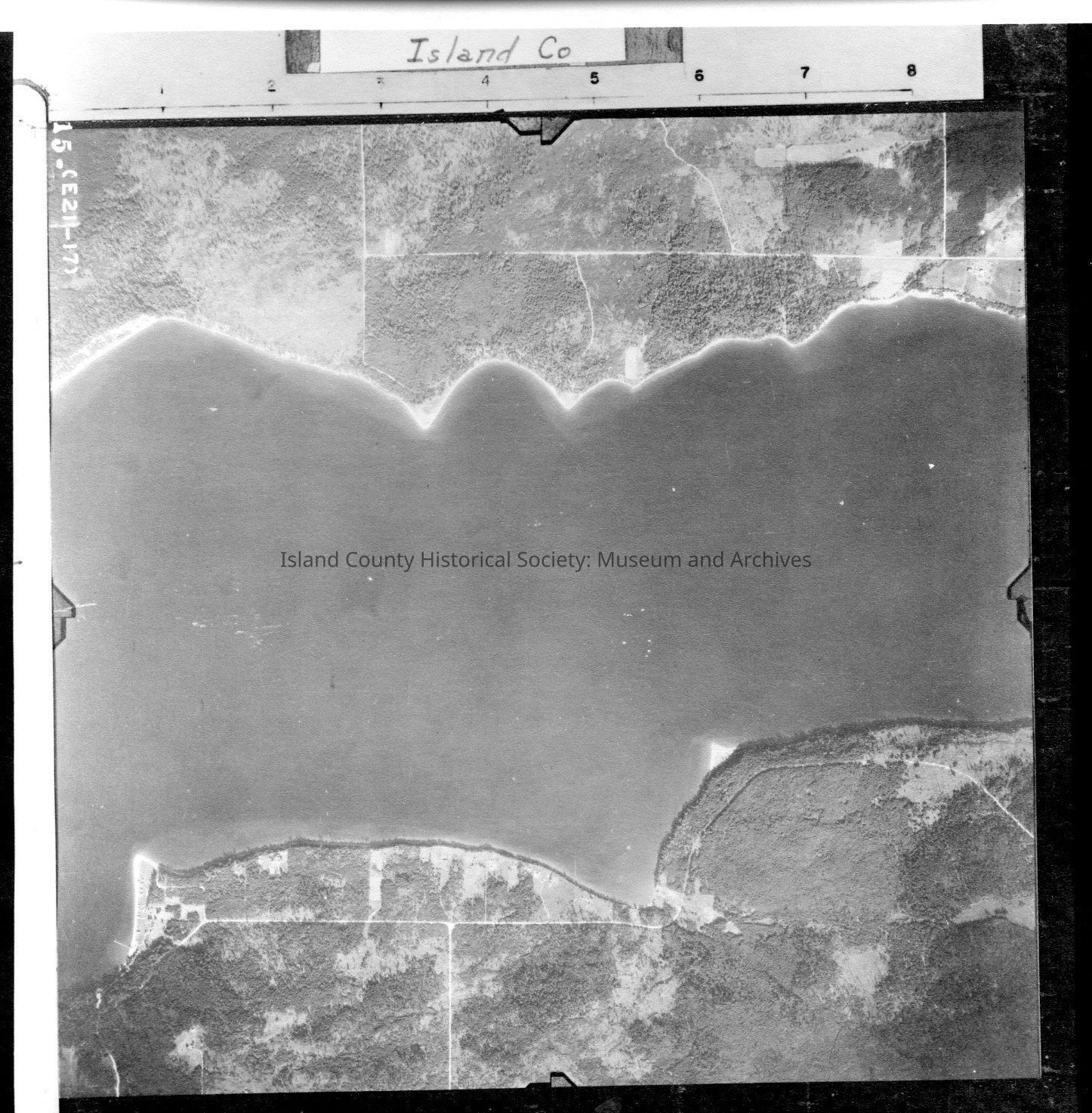 Donated by Island Conservation District Adjoins 2015.023.006 and 2015.023.008 Taken in the 1940s? 15-(E21-17) Holmes harbor runs north and south through the center of the image. label: Island Co See GIS for digital copies