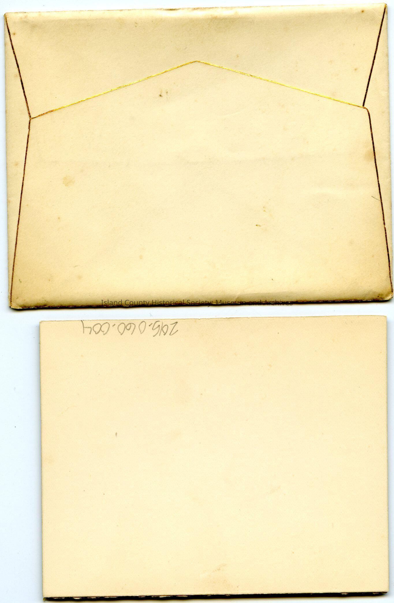 Wedding announcement of Ernst J. Hancock and Julia E. Kinney. On the lower portion it states: Married at the residence of the bride's parents, Coupeville, WA.. Ty. Wednesday, March 3, 1886, at 3 o'clock P.M. At home after Wednesday, March 10th, 1886. It is a folded cream-colored cardboard with an envelope edged in gilt.Lexicon