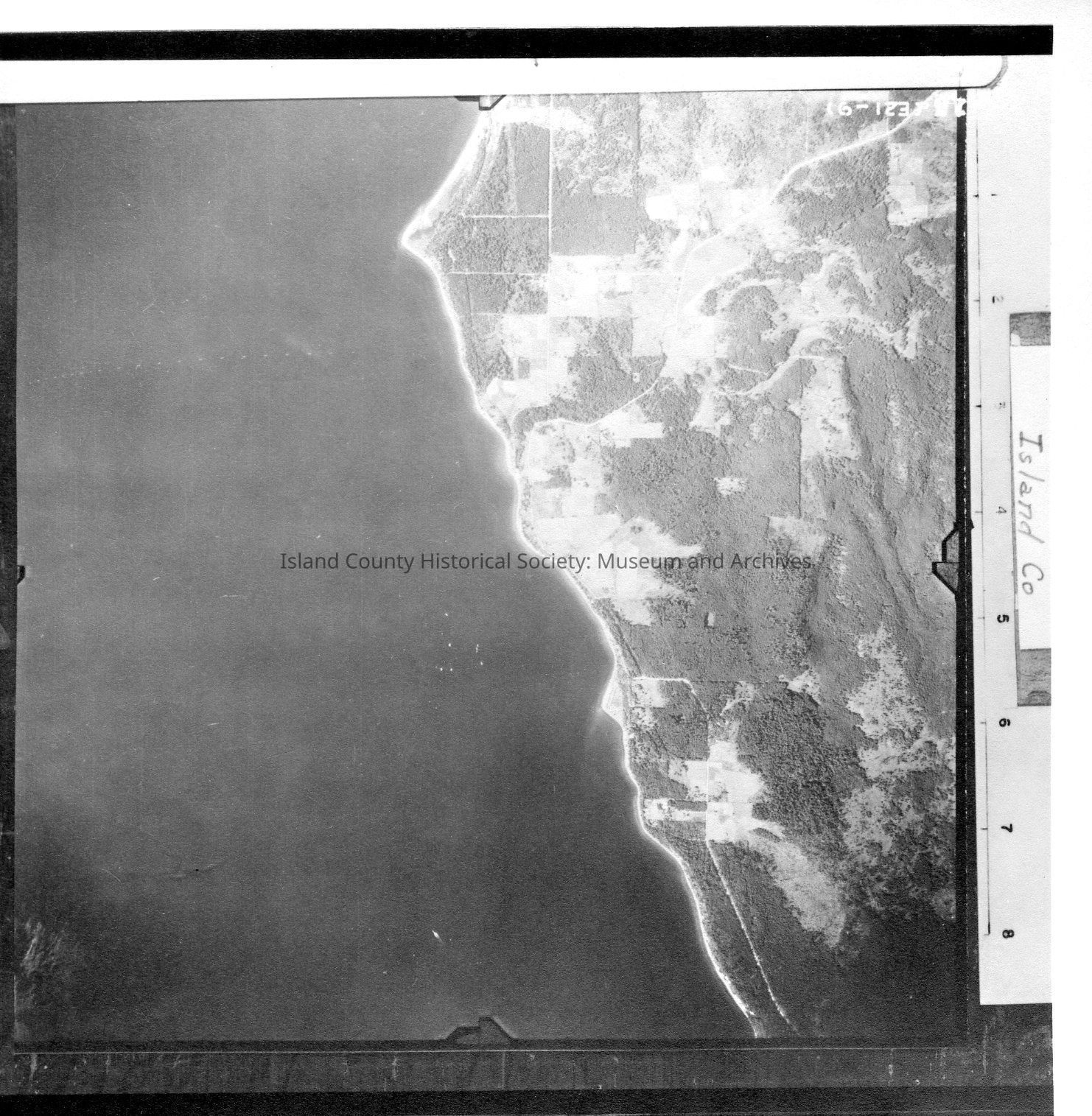 Donated by Island Conservation District Adjoins 2015.023.014 and 2015.023.016 Taken in the 1940s? 15-(E21-9) Most of the image is water. The eastern third of the image is a portion of Camano Island. Label: Island Co. See GIS for digital copies