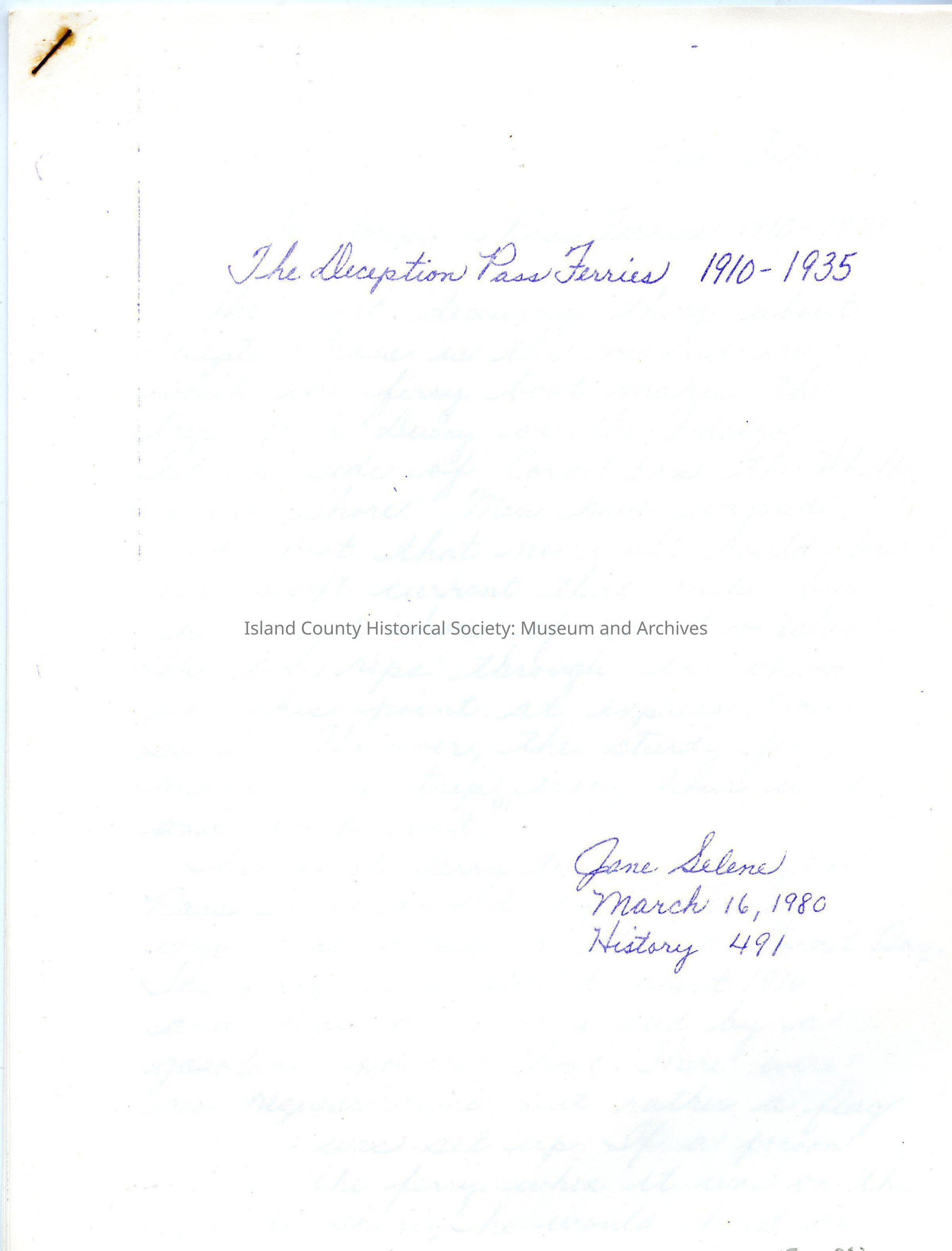 The Deception Pass Ferries 1910-1935