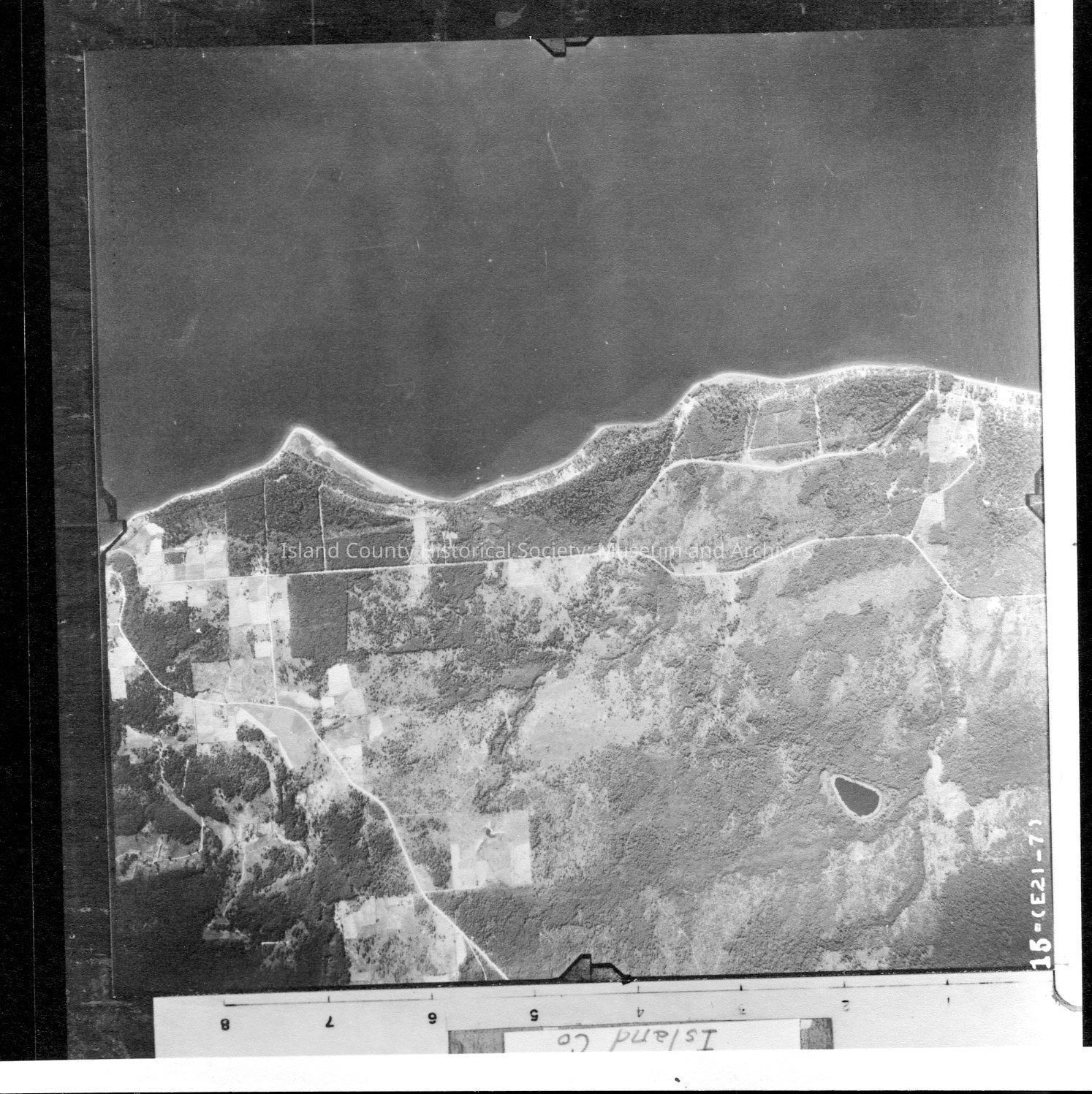 About half the image is water while the other half is land. Carp lake and Onamac Point. Main roads and farm lane.