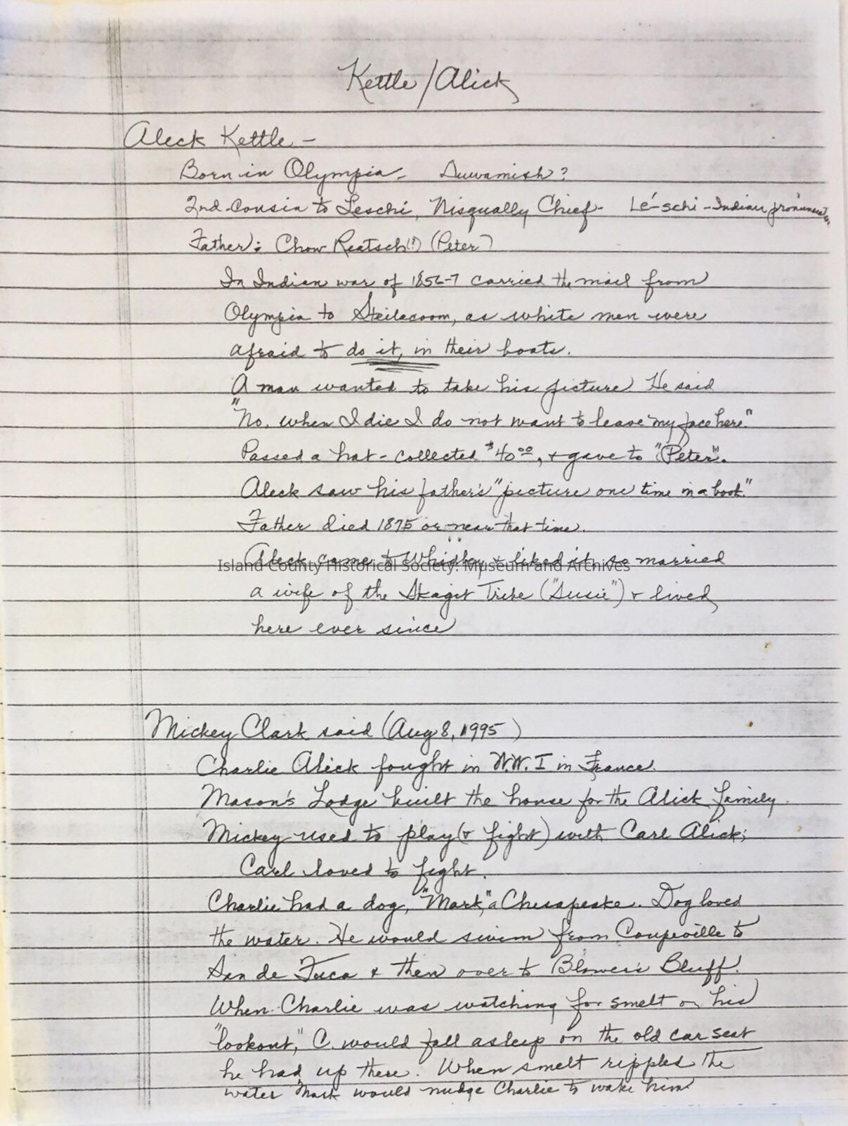 Photocopy of 6 pages (a through f) of Kettle/Alick, Snakelum and other people's details. a,b,c,d,e,f
