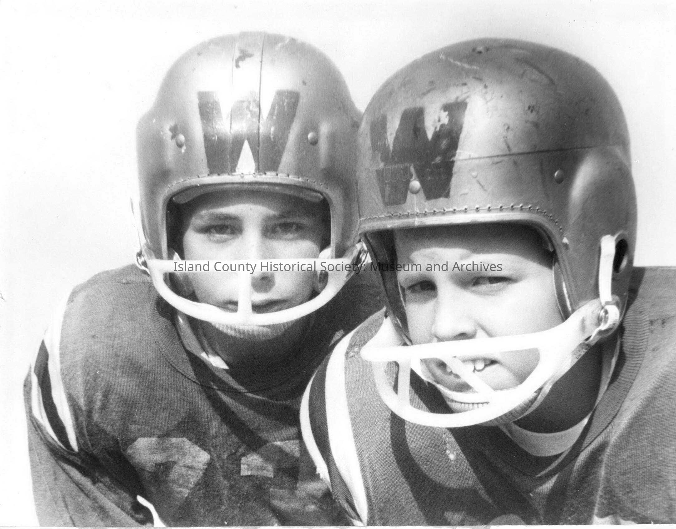 Two young boys with football uniforms.