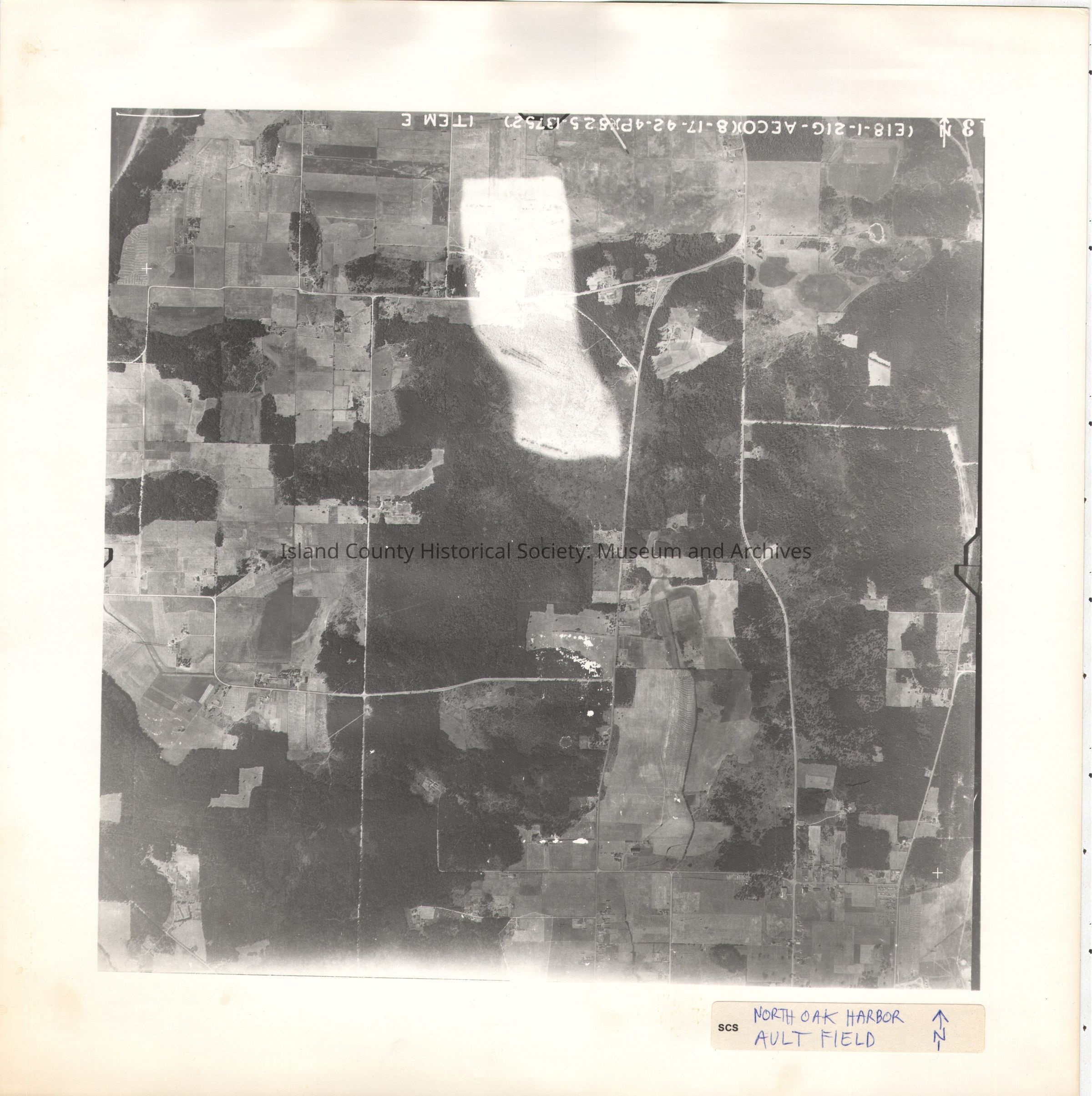 Donated by Island Conservation Adjacent to 2015.023.189 13-(E18-1-21G-AECO)(8-17-42-4P)(825-13752) ITEM E Photo taken 17 Aug 1942 North Oak Harbor Label in ink: North Oak Harbor Ault Field N (with arrow through N) See GIS for digital copies.