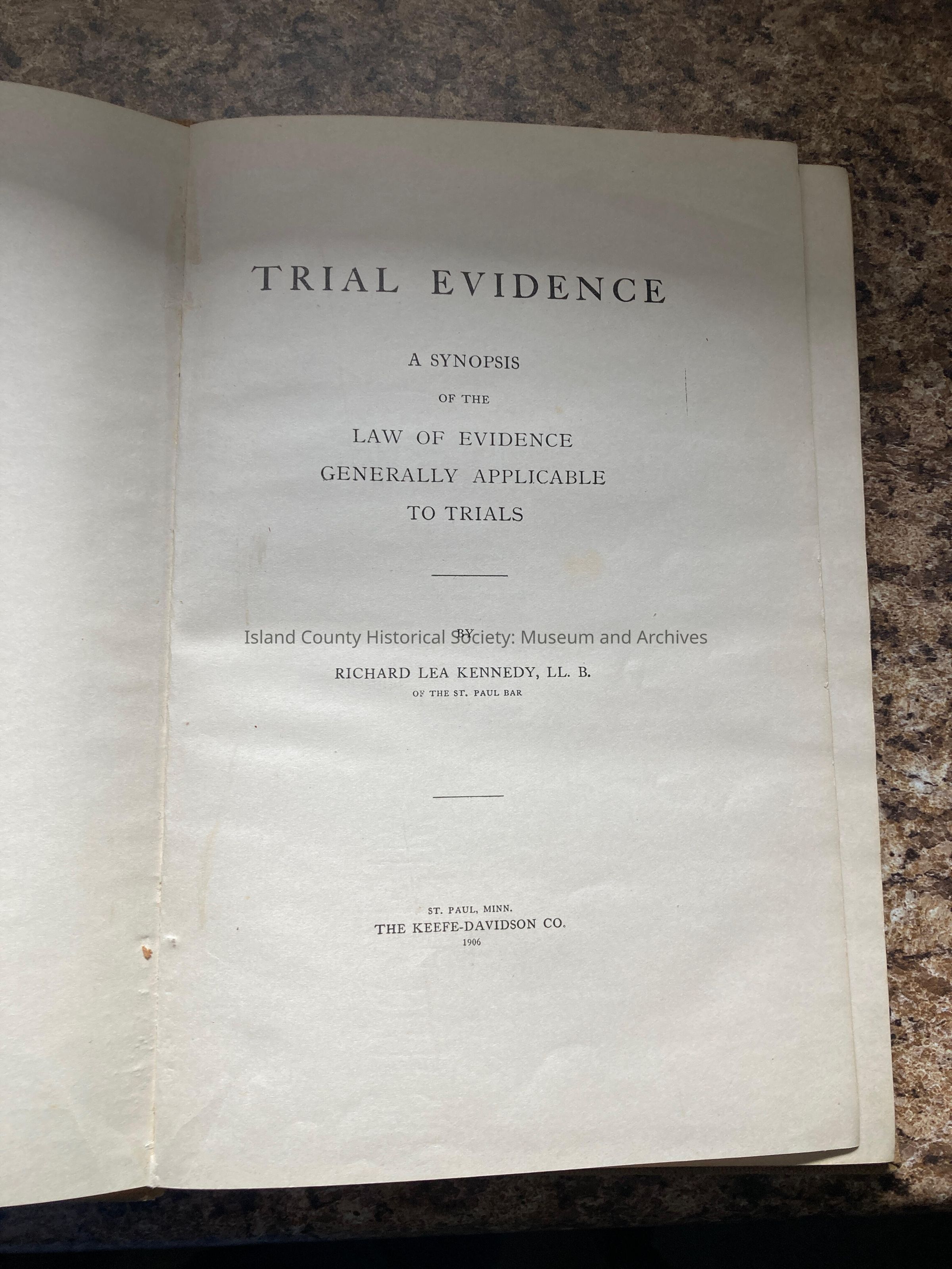 Kennedy, Richard Lea, Trial Evidence, Keefe-Davidson Company, St Paul, Minnesota, 1906. T-1274 New: 2016.008.001 1.11Lexicon