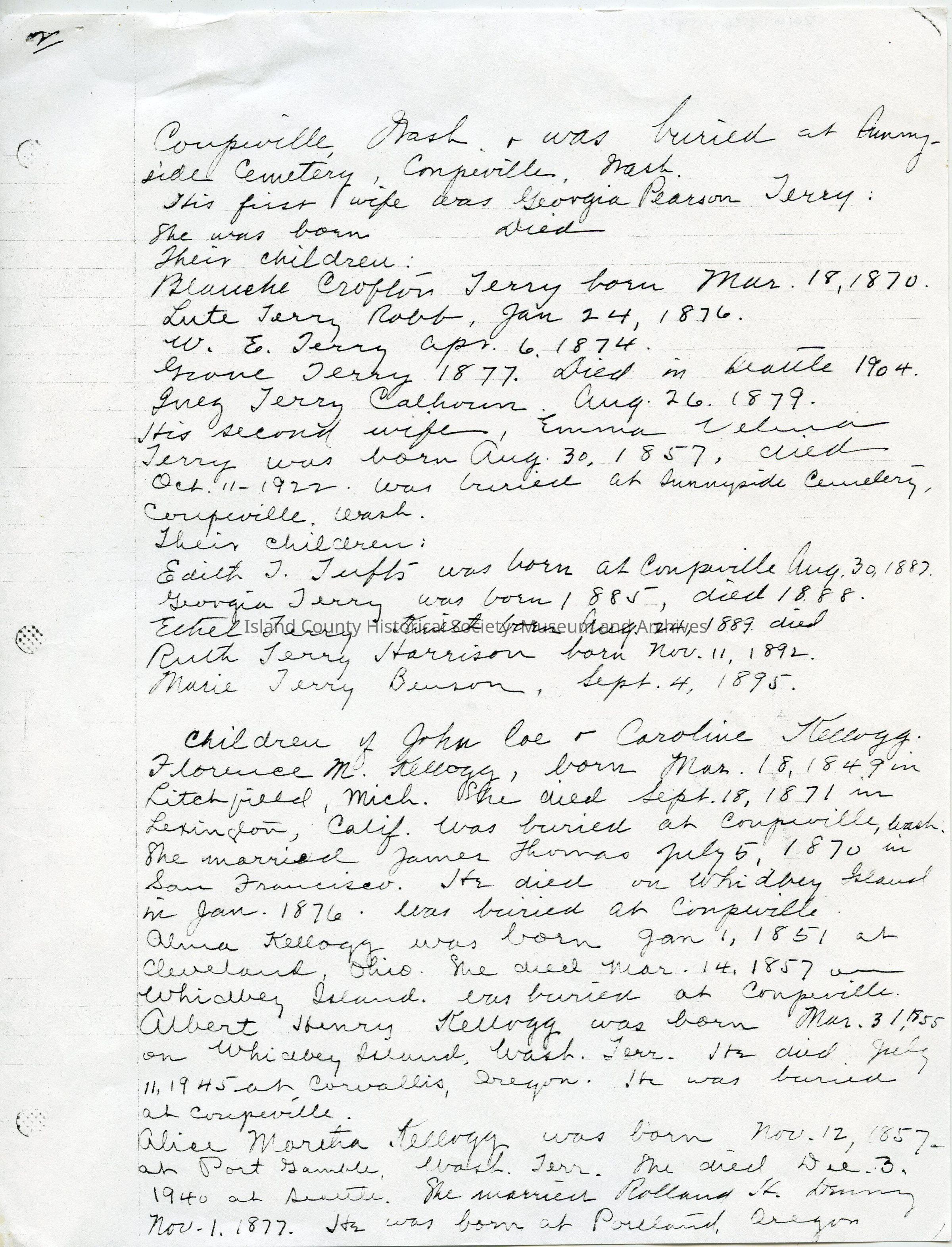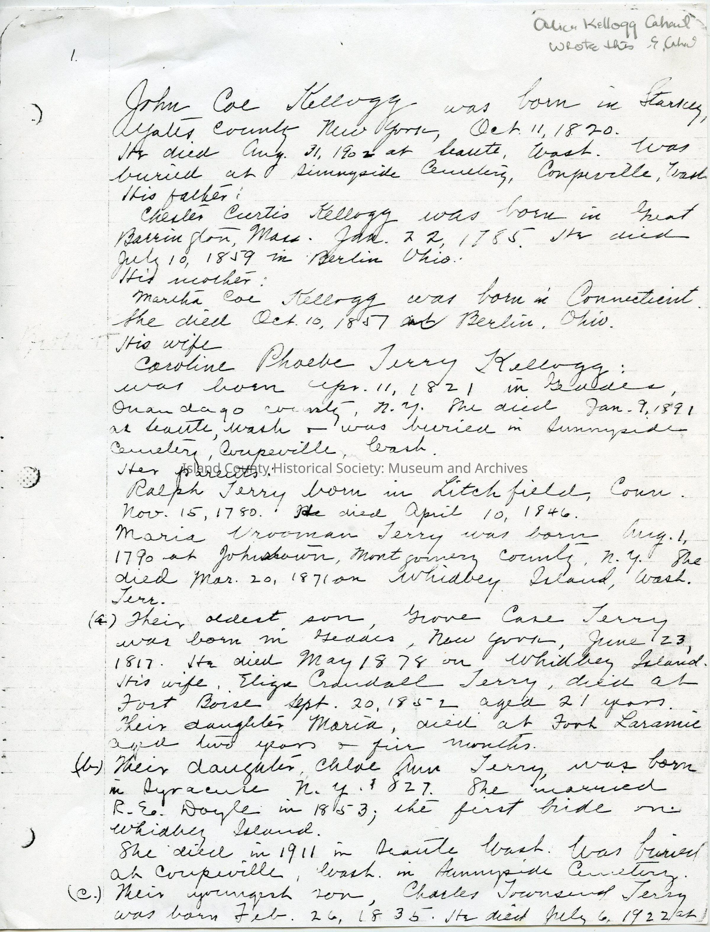 Photocopy of two pages of notes by Alice Kellogg Cahail.