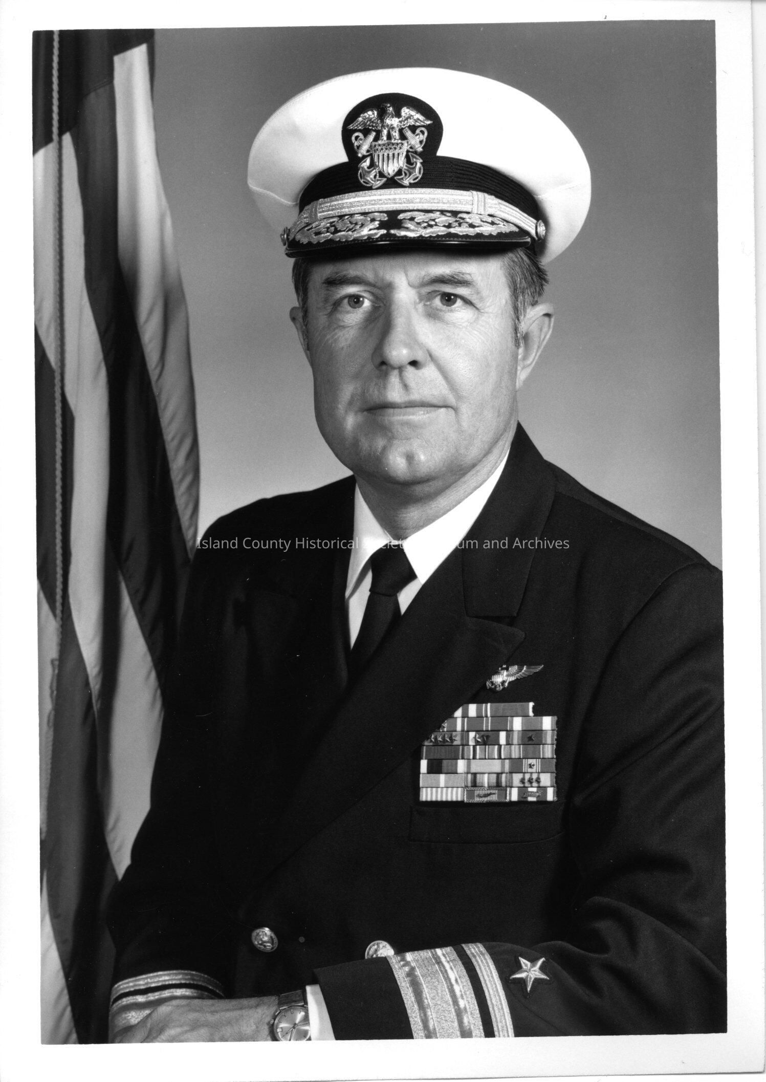 A photo of a navy officer. Typed on the back is "Rear Admiral William H. Harris." Black and white photograph.