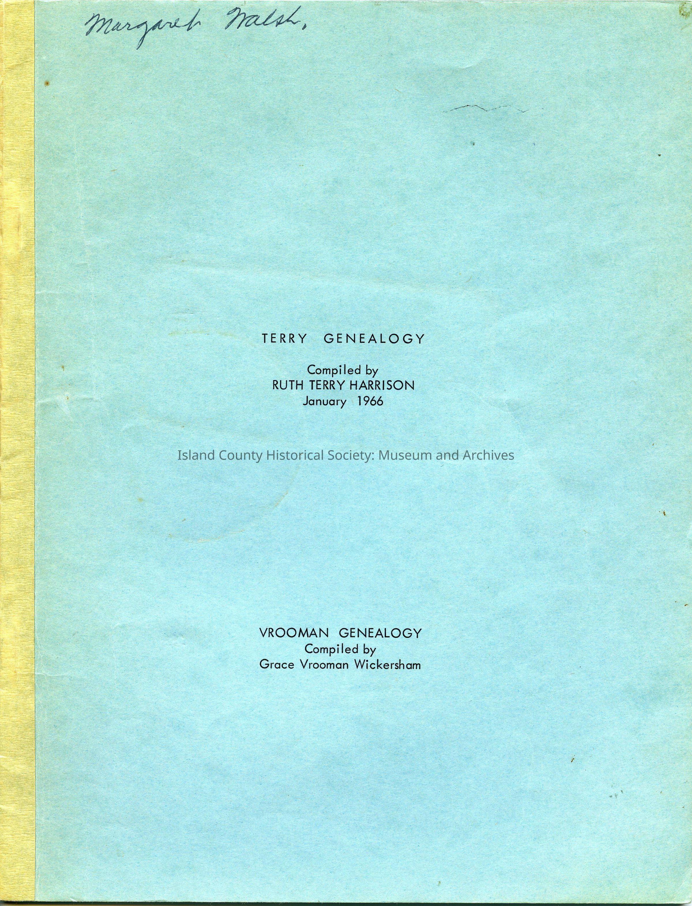 Terry Genealogy compiled by Ruth Terry Harrison in January 1966.