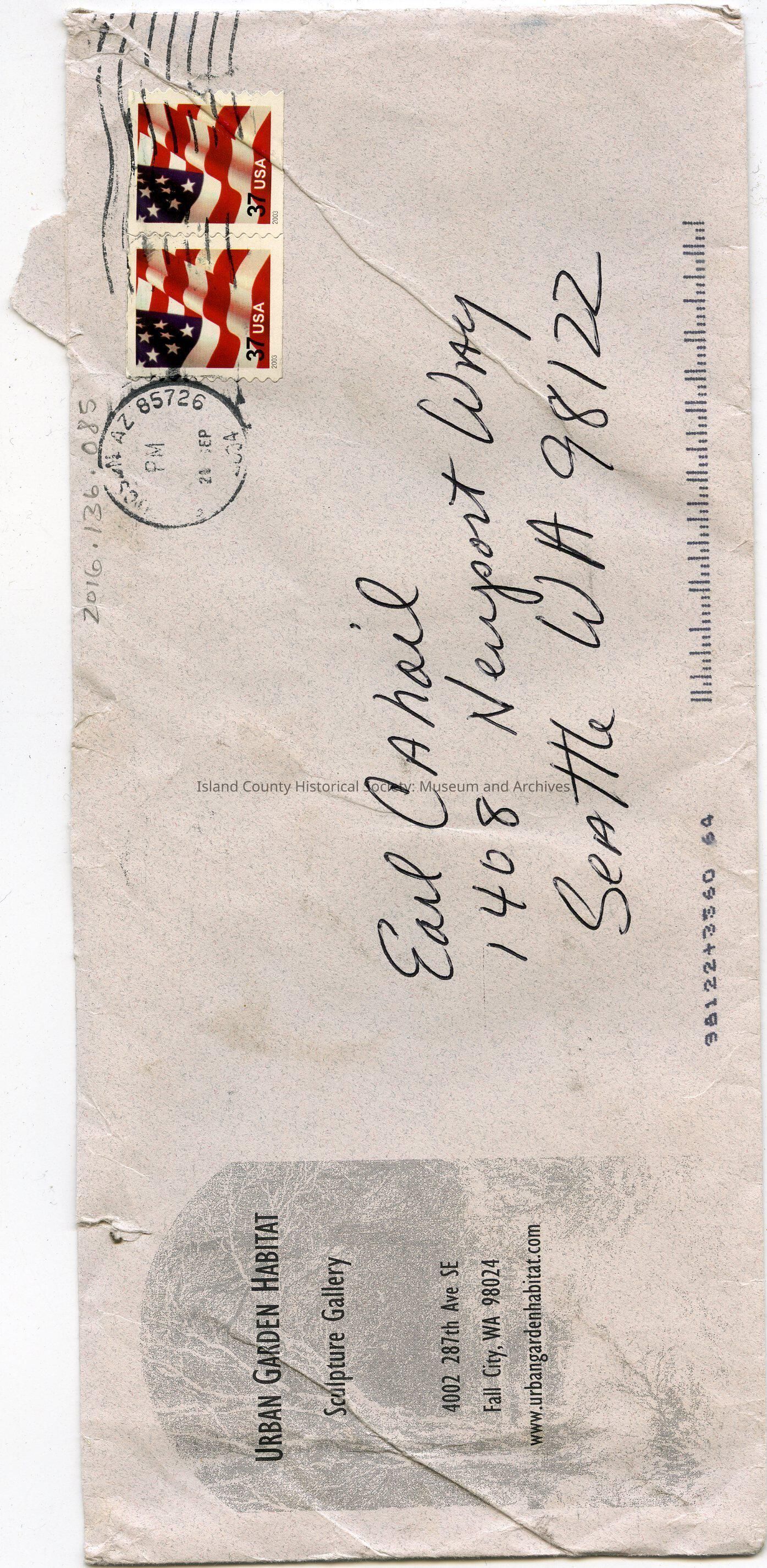 Envelope - addressed to Earl Cahail from Urban Garden Habitat.