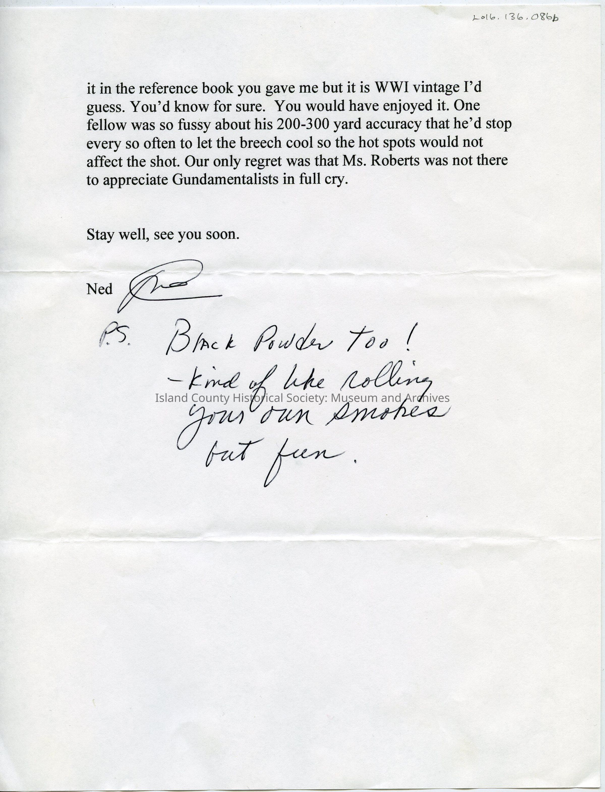 Letter from Ned to Earl regarding hunting with locals (a and b).