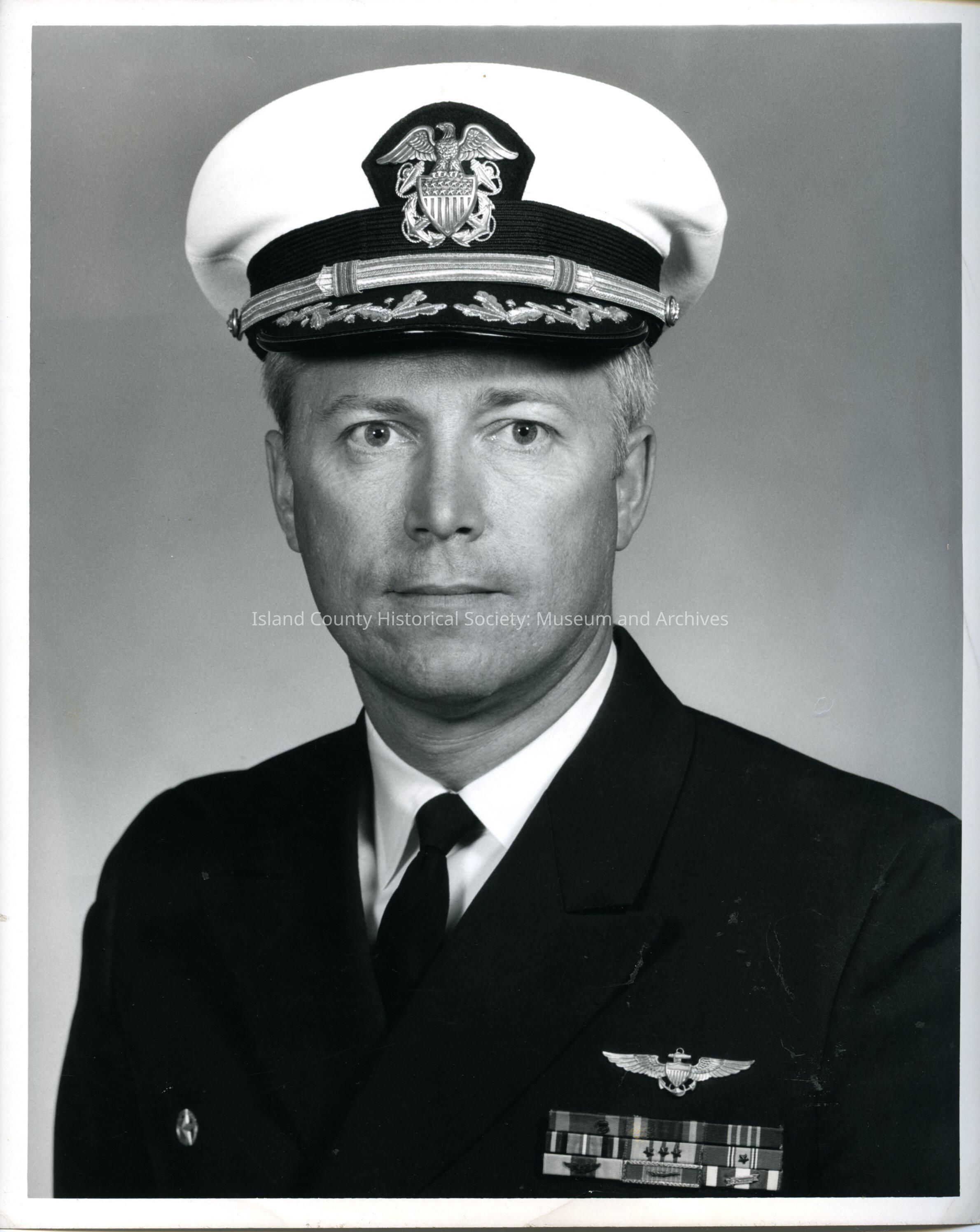 A photo of a navy officer. Handwritten on the back is "CDR D.J. Taft." Black and white photograph.