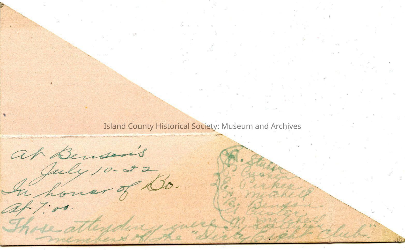 At Benson's July 10.22 In house of Bo. at 7:00. Those attending were members of the "Dirty Eight Club"