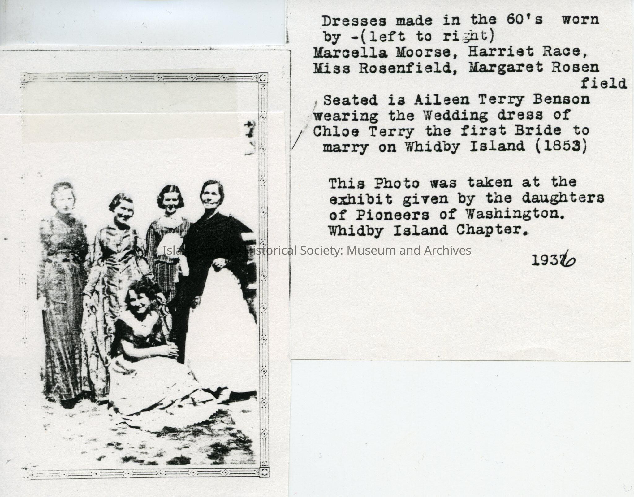 Photo of five women standing, one sitting down. Typed description is also in the photo.