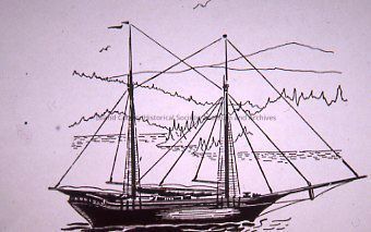Photograph of an illustration of a sailing ship.