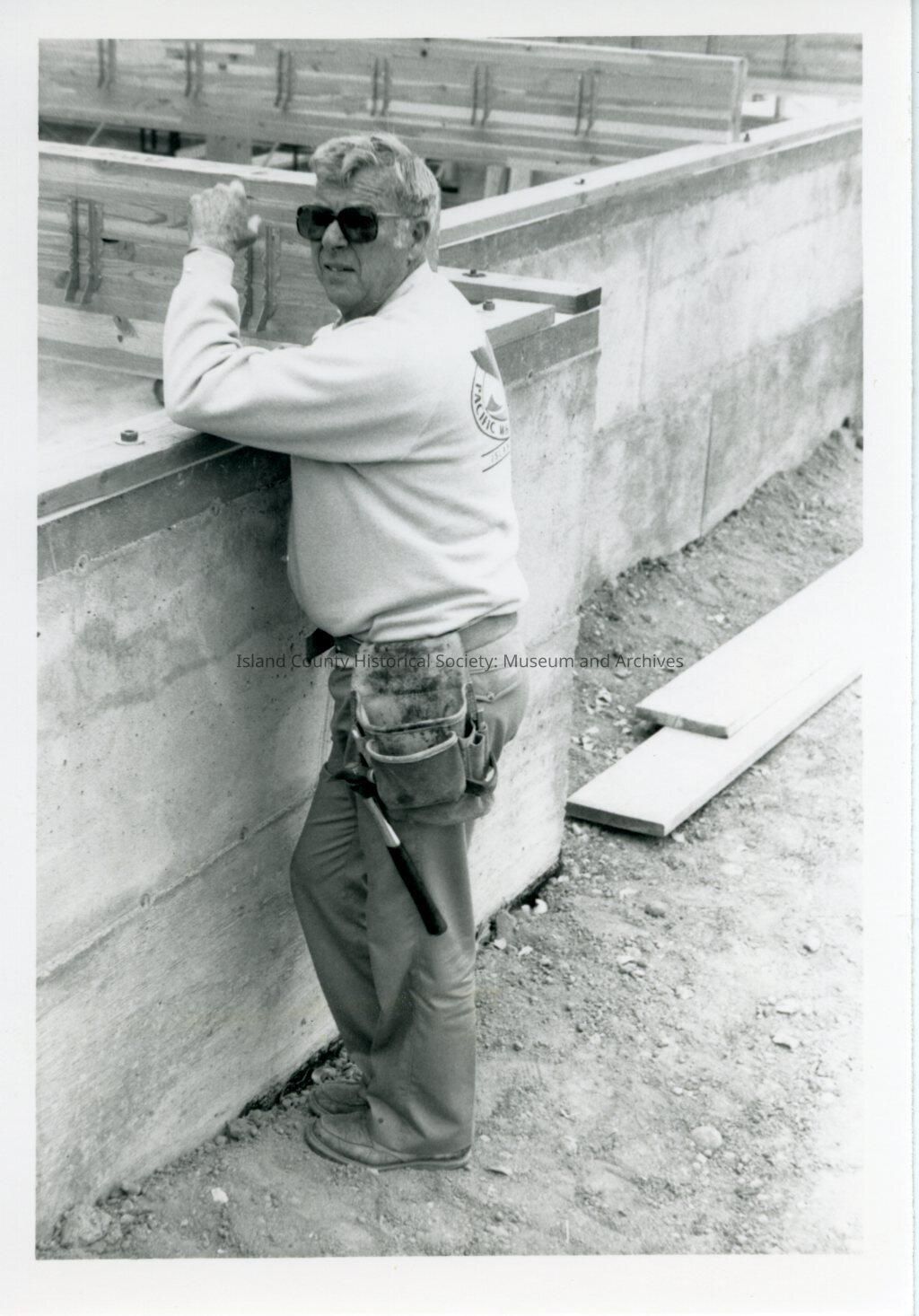 A photo of man wearing sunglasses and standing at part of a building (new Museum?).