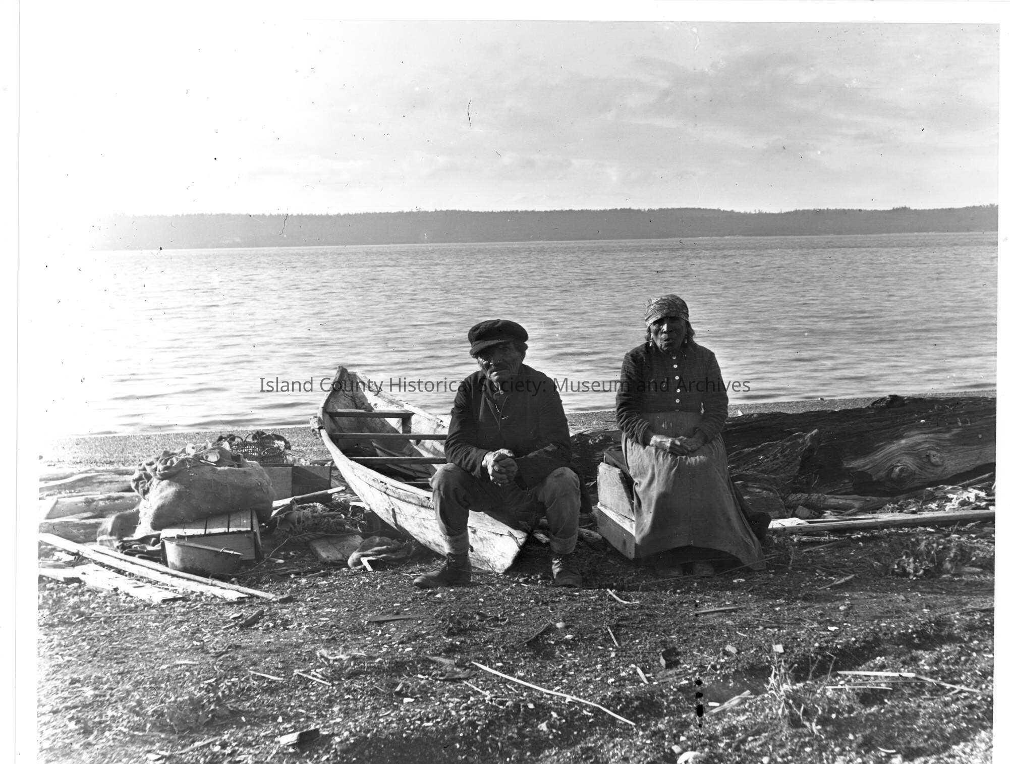 Chief Snakelum & wife Mary at Snakelum Point (NOTE: 4 x 5 glass negative stored un Unit 2, Shelf C)