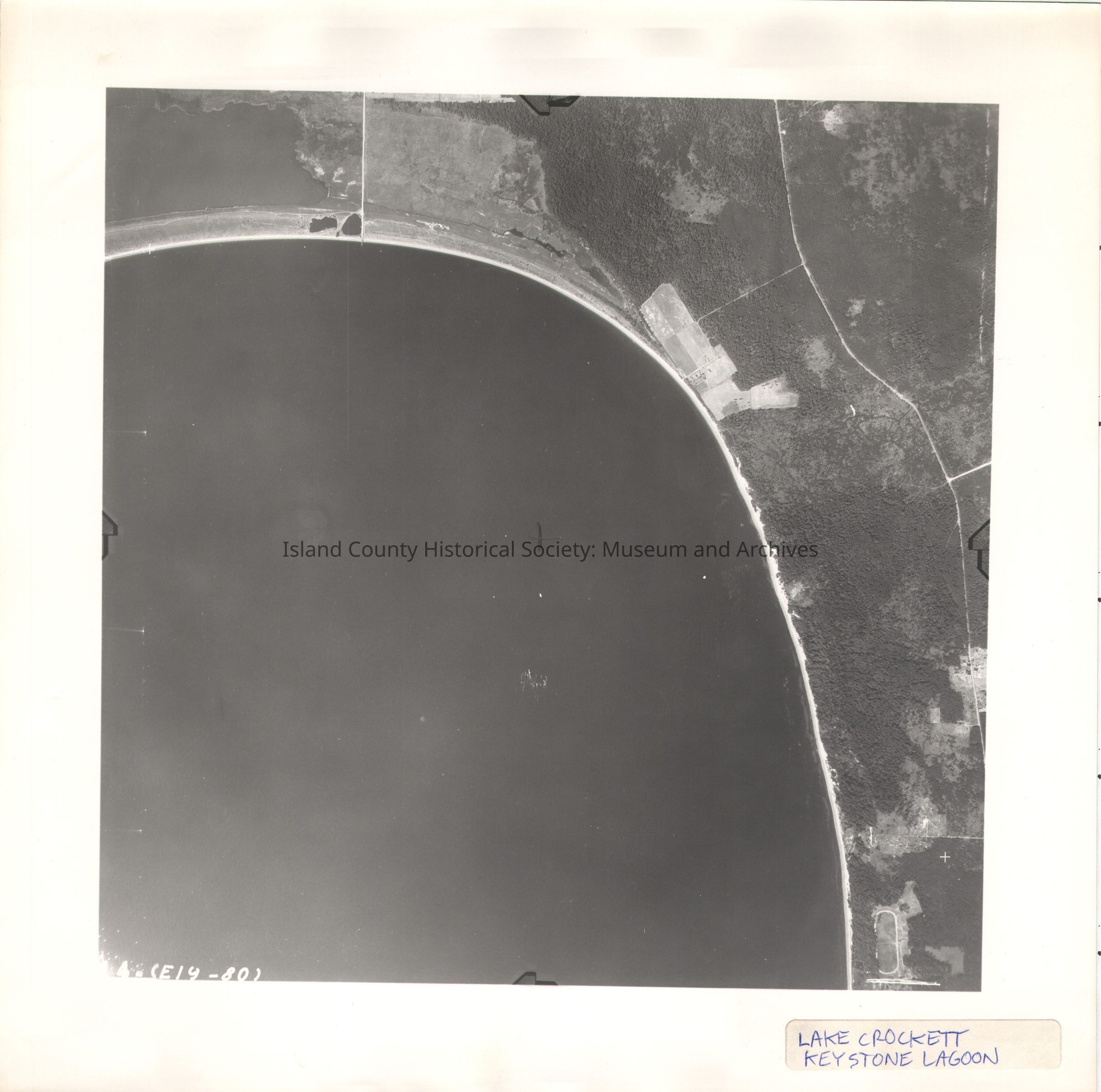 Donated by Island Conservation Adjacent to 2015.023.208 and .210 14 (E19-80) Photo taken 17 August 1942 Label in ink: Crockett Lake Keystone Lagoon Pencil X in the center See GIS for digital copies.