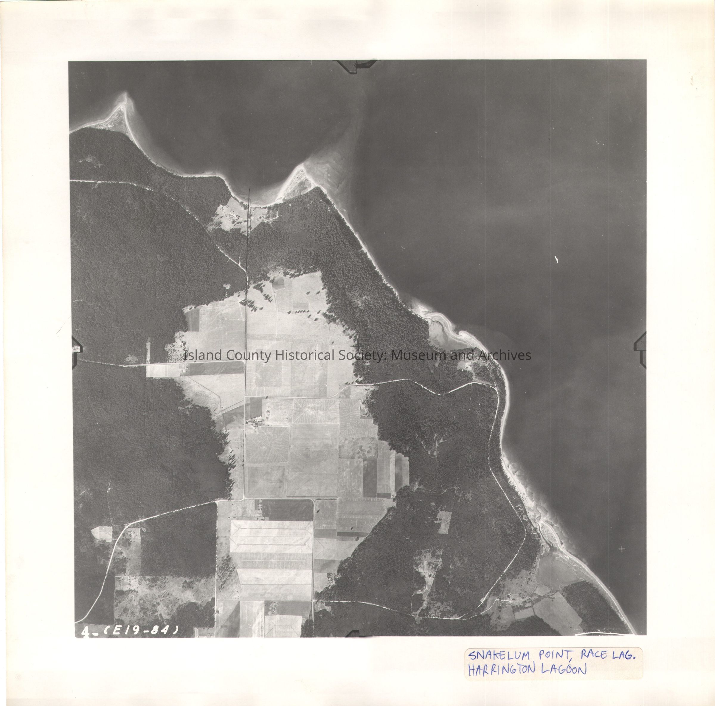 Donated by Island Conservation Adjacent to 2015.023.212 and .214 14 (E19-84) Photo taken 17 August 1942 label in ink: Harrington Lagoon Race Lagoon Snakelum Point Pencil X in the center (barely visible in the trees) See GIS for digital copies.