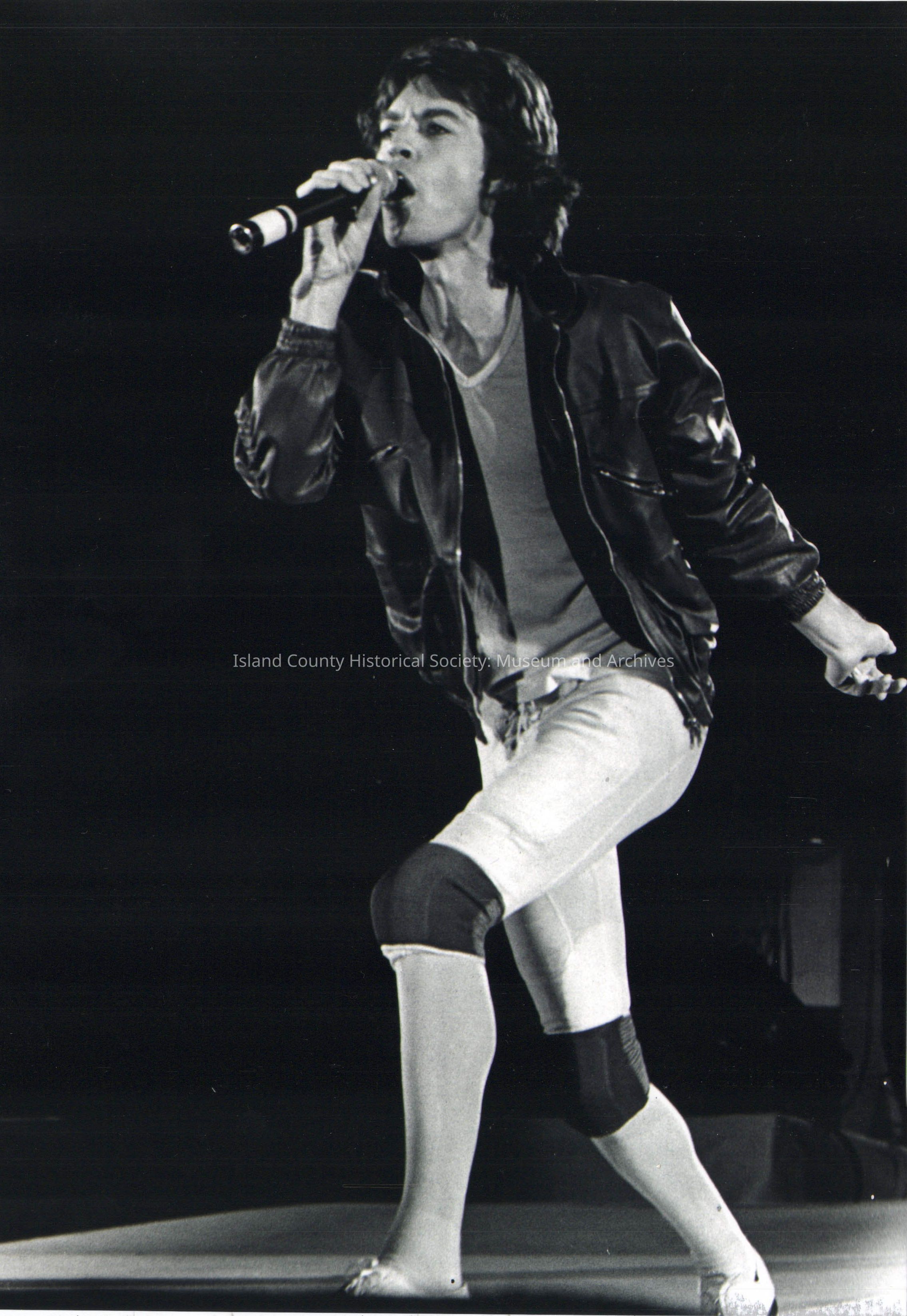 Black and white 8x10' glossy of Mick Jagger in concert taken by Wallie Funk