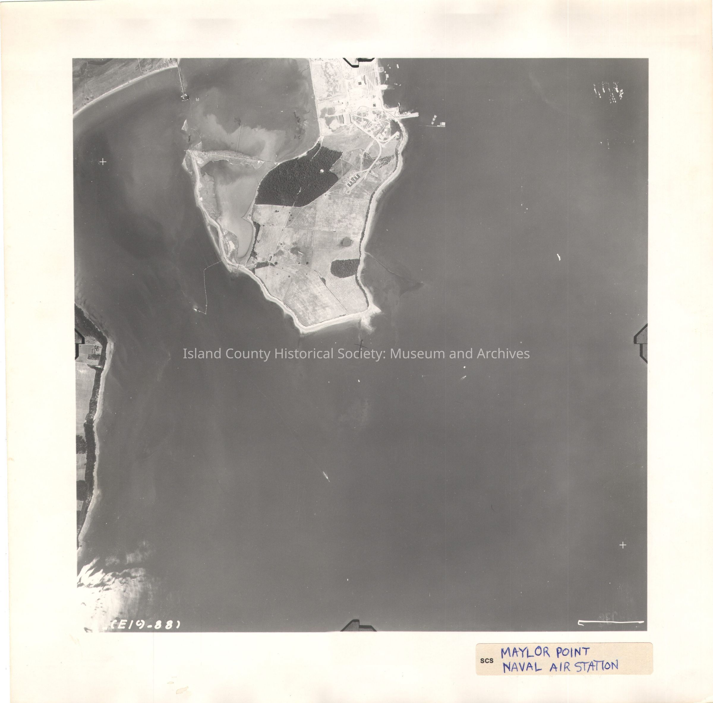 Donated by Island Conservation Adjacent to 2015.023.216 and .218 14 (E19-88) Photo taken 17 August 1942 Label in ink: Maylor Point, Naval Air Station Pencil X in the center See GIS for digital copies.