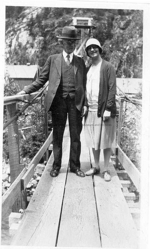 Man and a woman on a foot bridge in Lester C. Still file.