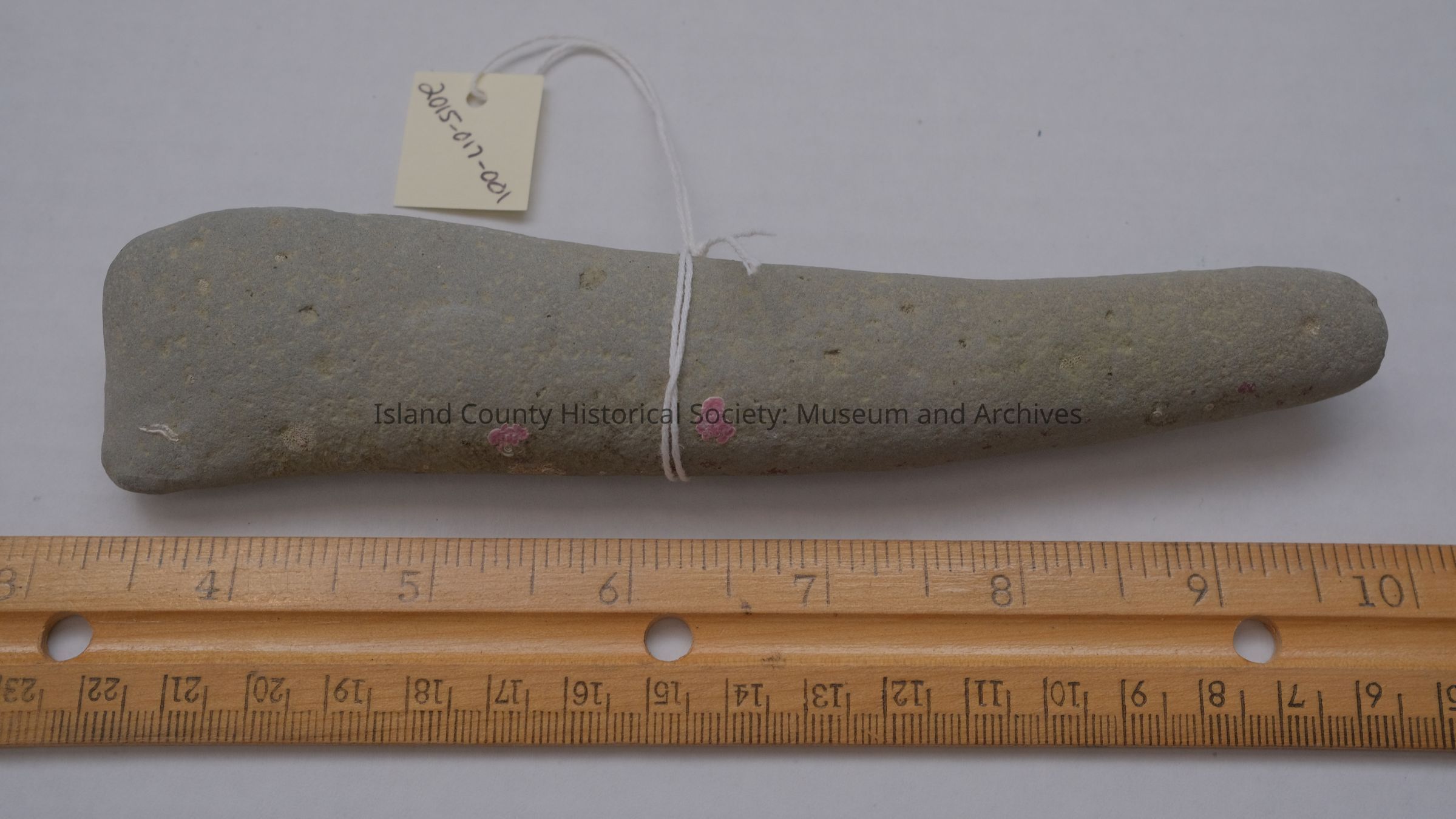 Stone implement possibly used by local Native Americans. Found at Keystone Underwater Park, Coupeville, WA on 02/01/2011 in a depth of 10 feet.