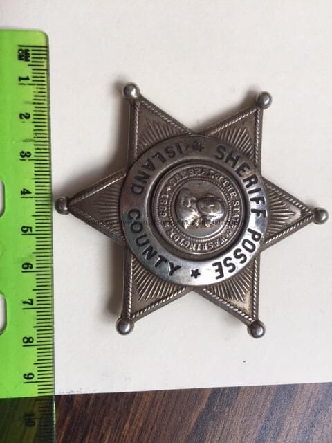 Sheriff Posse Island County badge/pin. The Seal of the State of Washington, 1889.