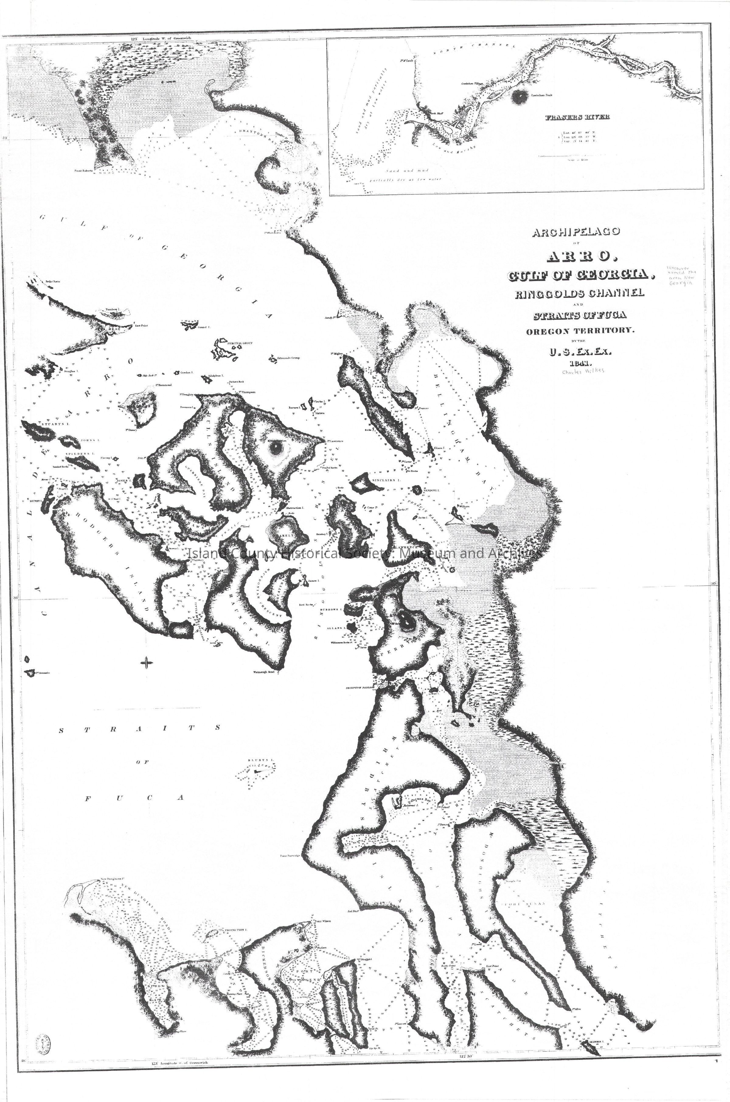 Copy of map of Archipelago of Arro, Gulf of Georgia, Ringgolds Channel and Straits of Fuca, Oregon Territory.