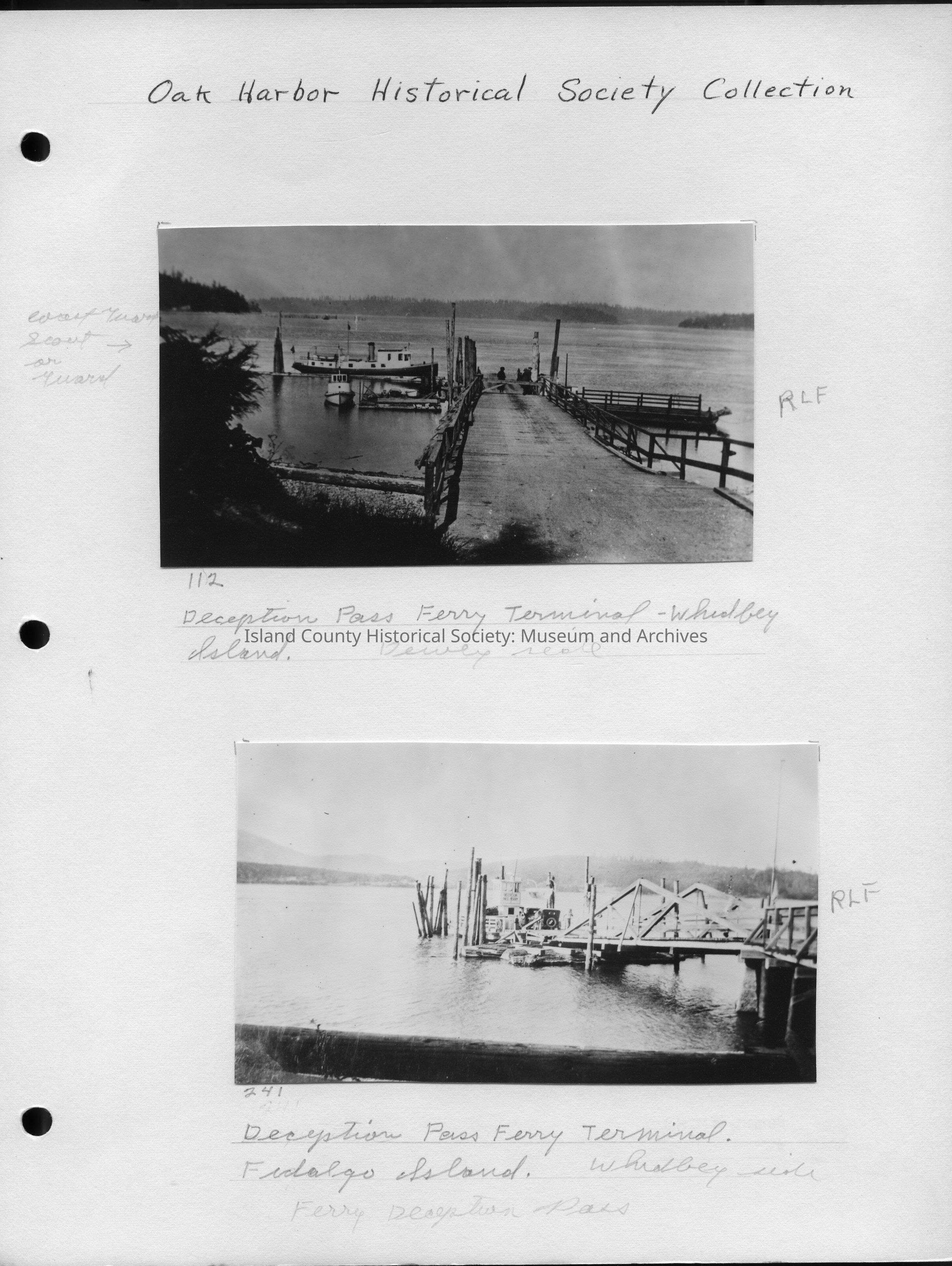Bottom Photo - 5"W x 3"H - Photo of the Deception Pass Ferry terminal on Fidalgo Island. The photo was taken looking toward the Whidbey side. No date but sometime prior to 1935.