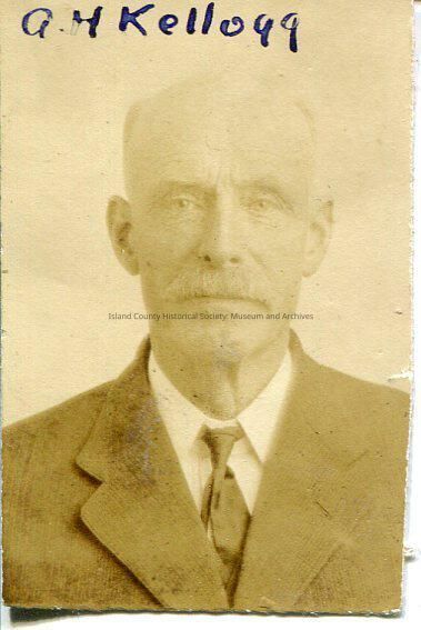 A small photo of an older man. The man is wearing a suit and tie. He also has a moustache. He is looking at the camera, but not smiling. The top of the photo says, "A.H. Kellogg".