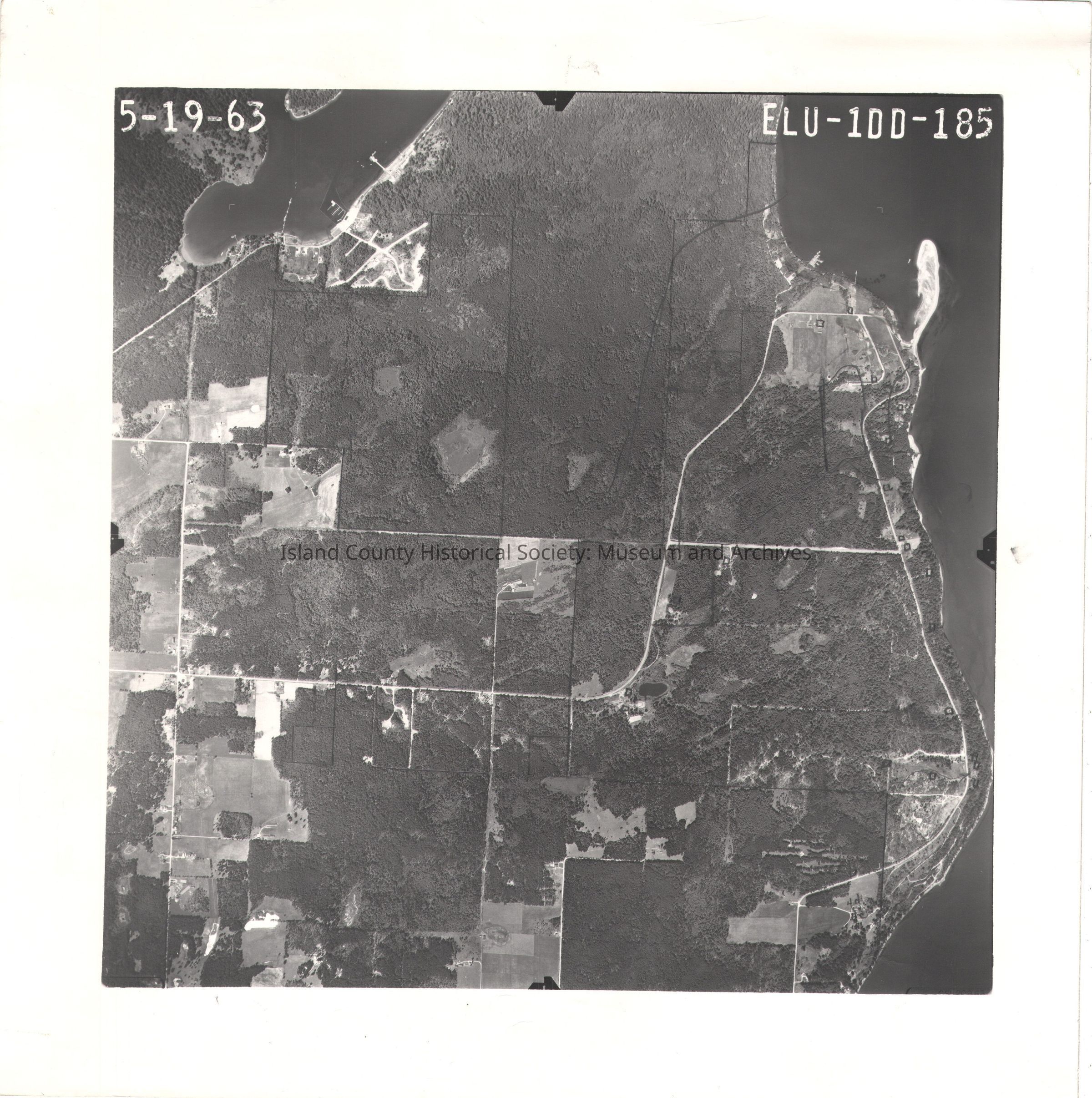 Donated by Island Conservation Adjacent to 2015.023.318 one section away from 2015.023.316 5-19-63 ELU-1DD-185 (don't have 184) Photo taken 19 May 1963 Ben Ure Spit pencil lines drawn on the image See GIS for digital copies.