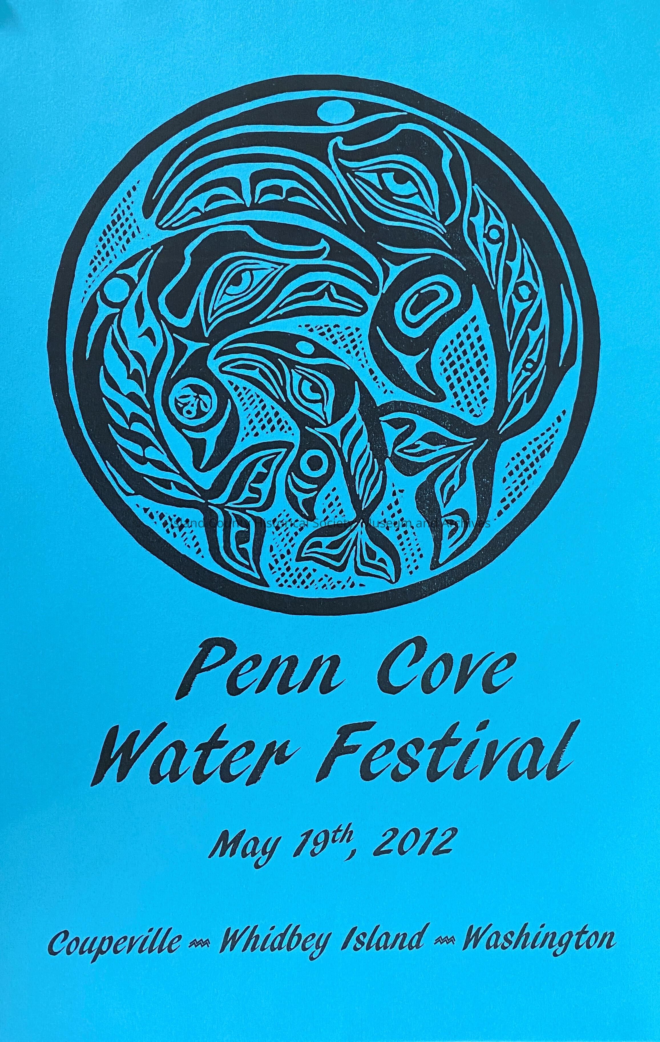 Blue poster with Humpback Whale whorl design by Roger Purdue for the Penn Cover Water Festival.Lexicon