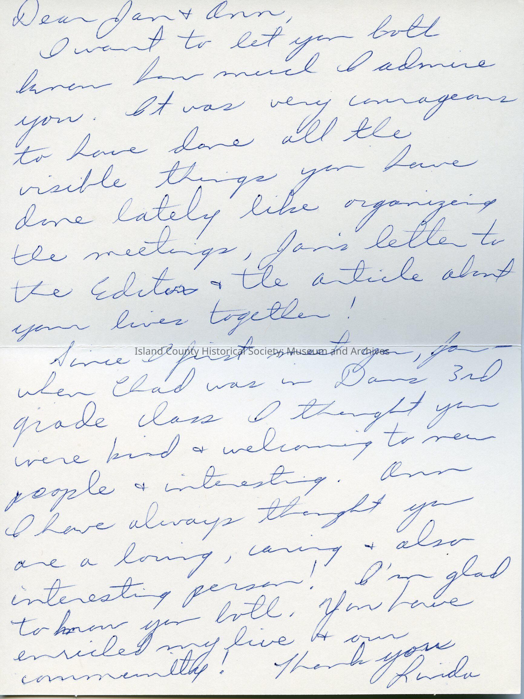 Since I first meet you, Jo when Chad was in Dar's (?) 3rd grade class I thought you were kind and welcoming to new people and intresting. Ann I have always thought you are a loving, caring and also interesting person! I'm glad to know you both. Your Love enriched my live and own community!