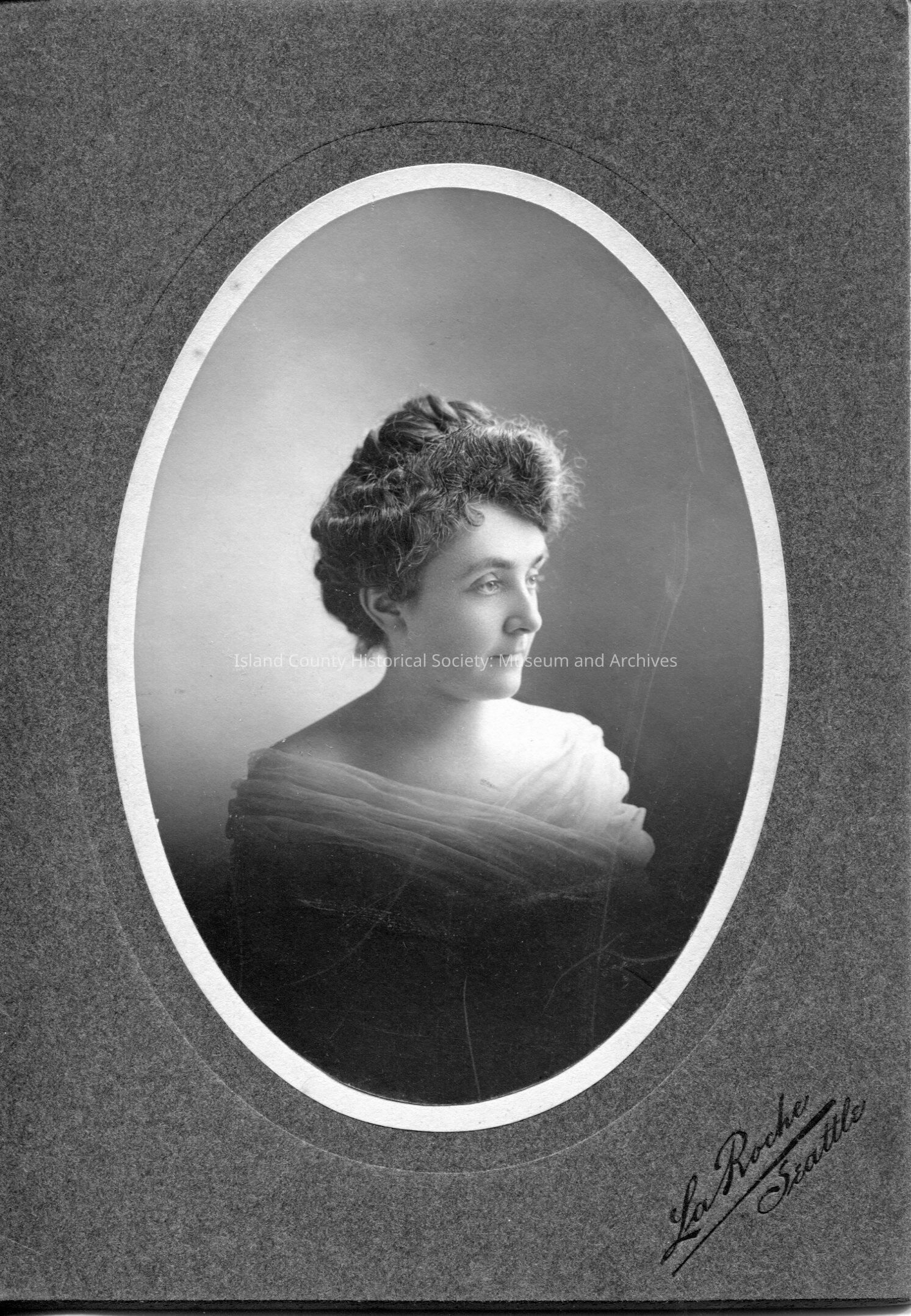 This black and white mat-framed photo is of a woman. Handwritten on the back is "May 1902."