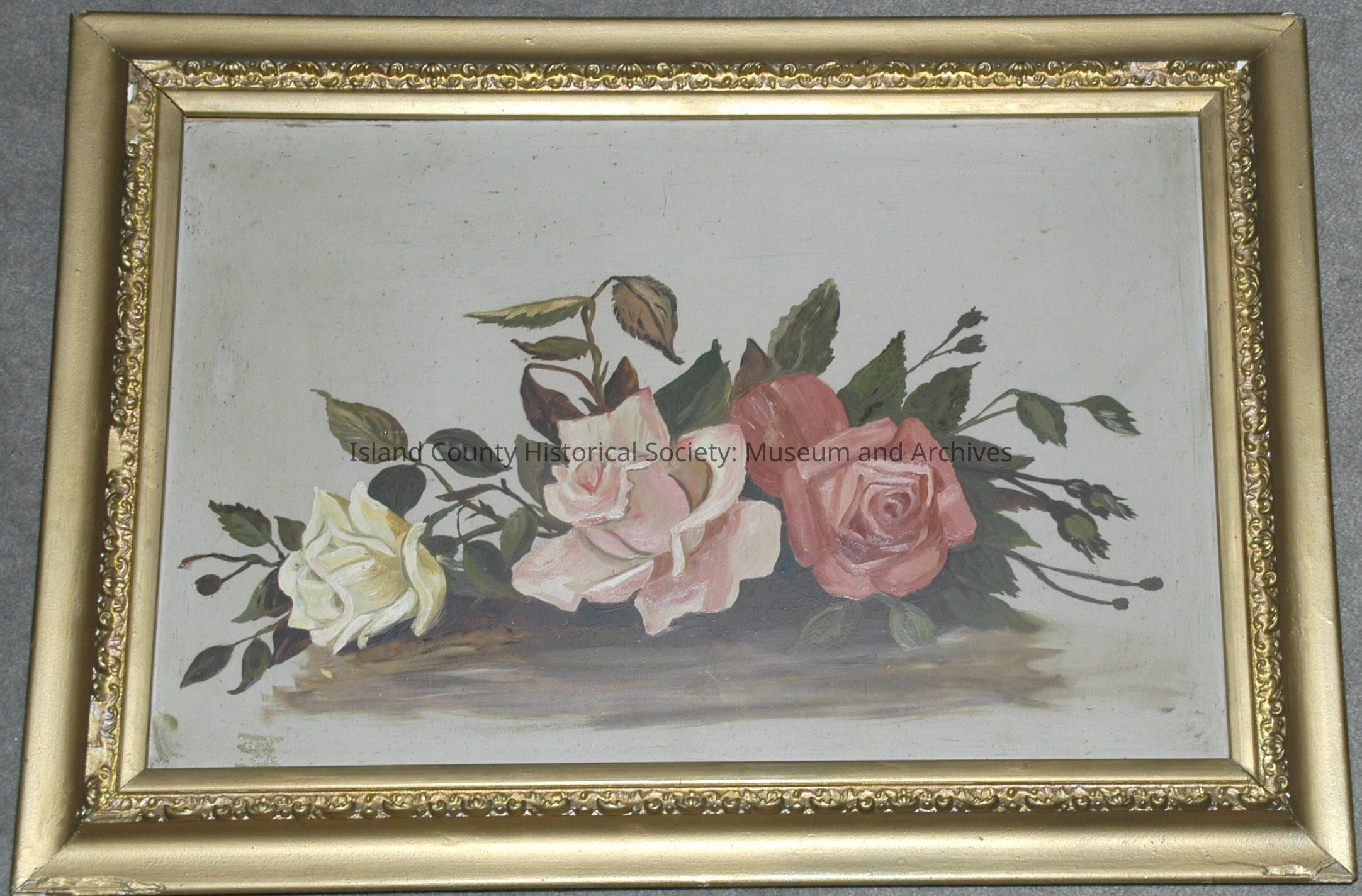 Framed painting of three roses. By Katherine Benson, Grandmother of Nina Armstrong.