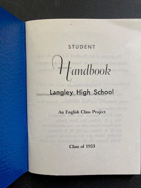 small blue booklet titled "Student Handbook of Langley High School"; An English Class Project; Class of 1953