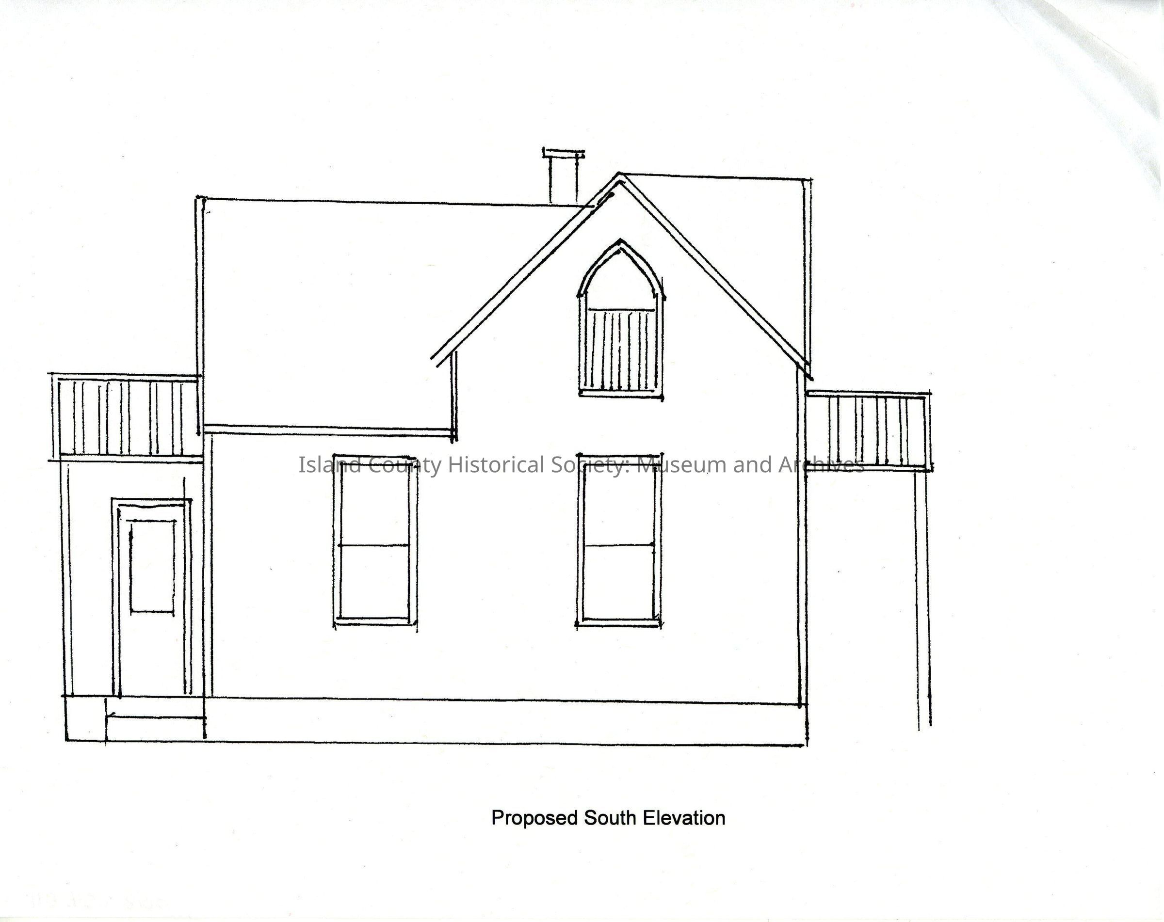 Sketch of Joseph Libbey House. Part of the Certificate of Appropriateness document. Proposed south elevation.
