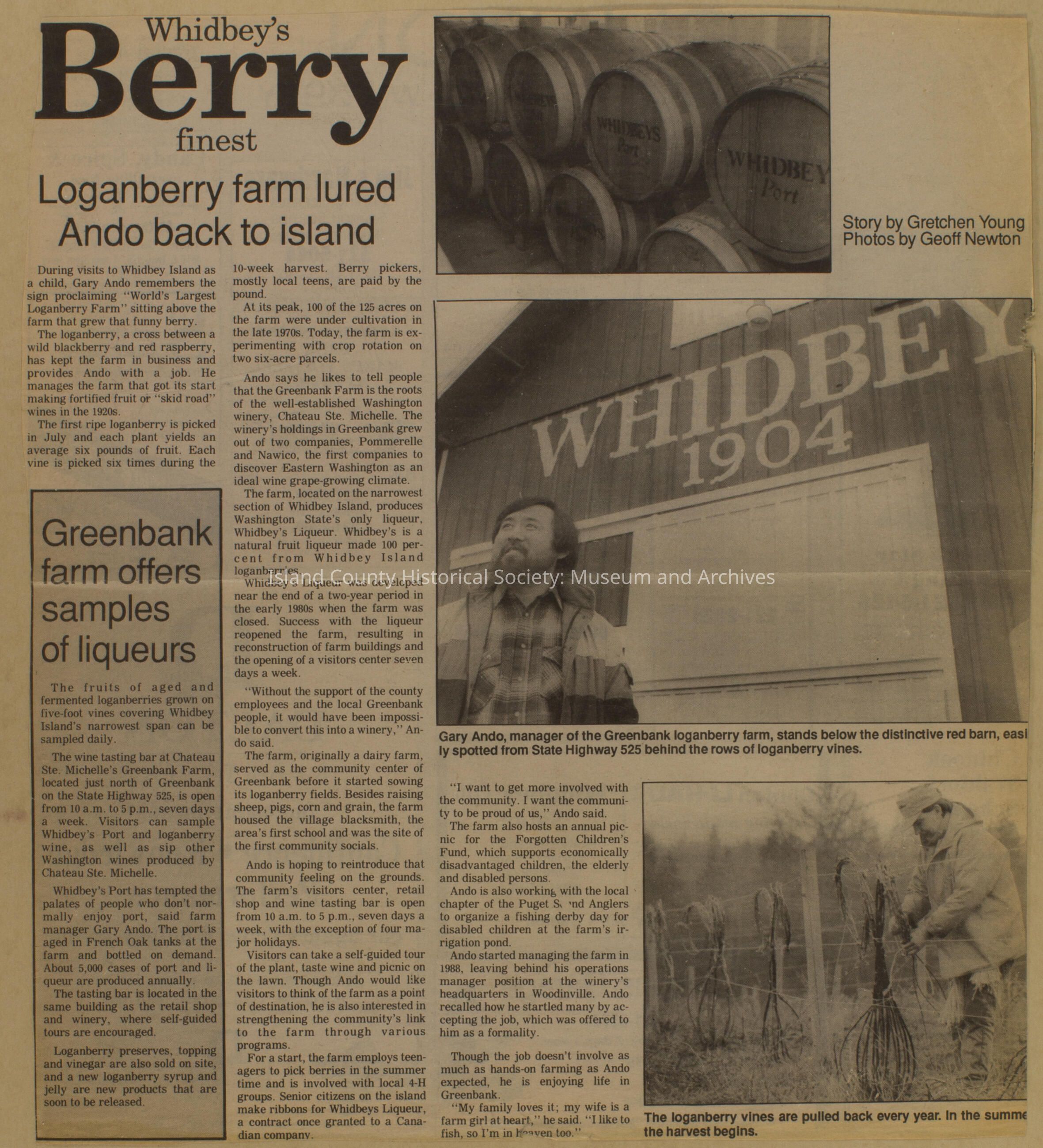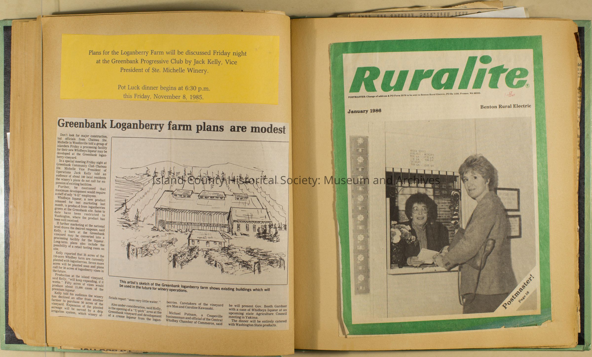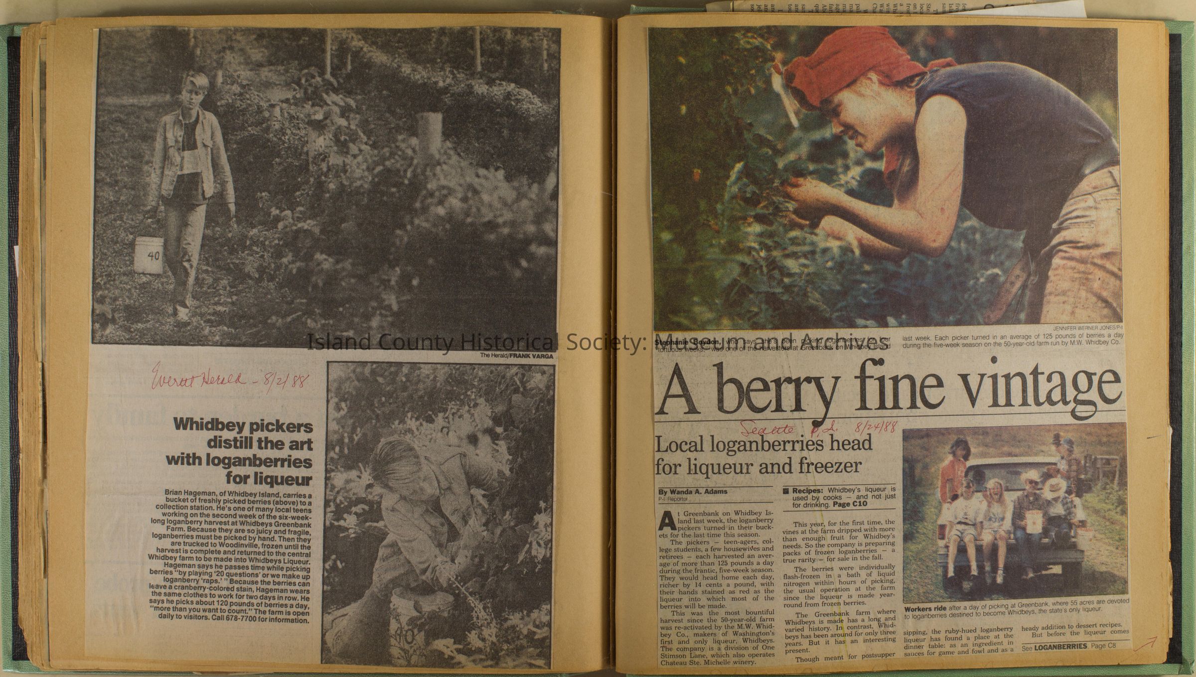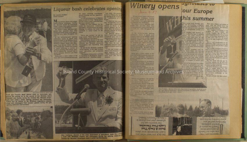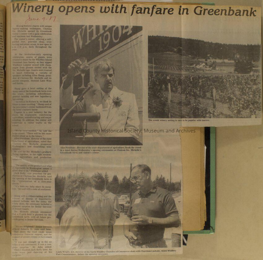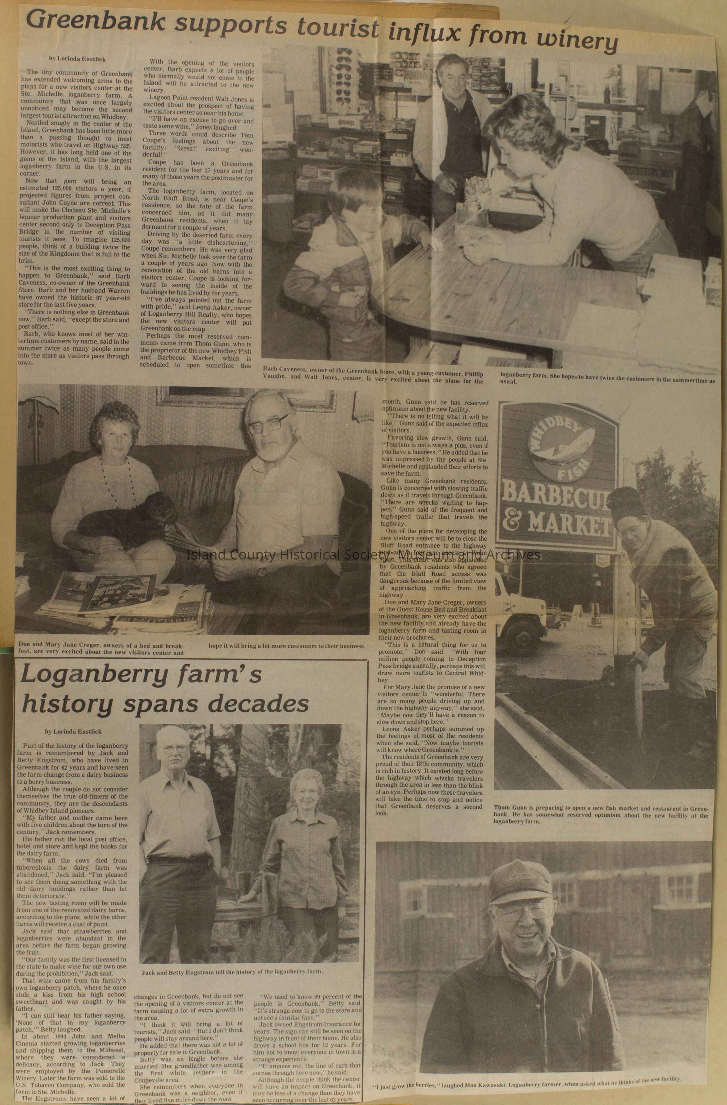 Greenbank scrapbook, photos, newspaper clippings concerning Greenbank farm and Greenbank. Digital copy only of scrapbook donated by Margaret Kawasaki and parents Mun and Carolyne who managed the Farm during the 70s and 80's as a Loganberry farm.
